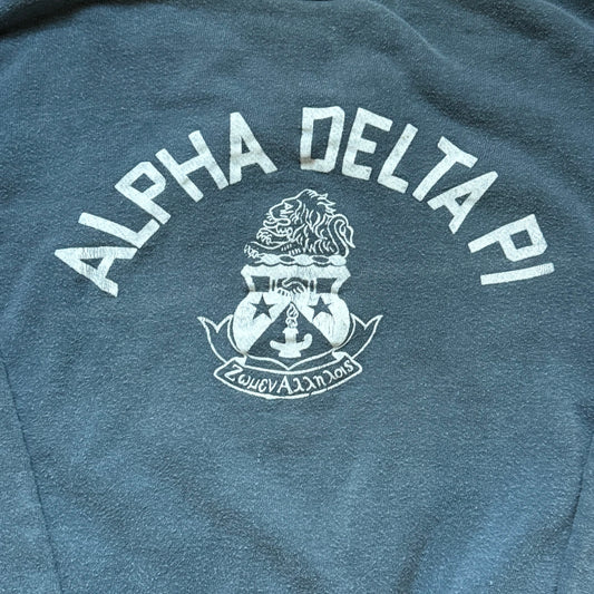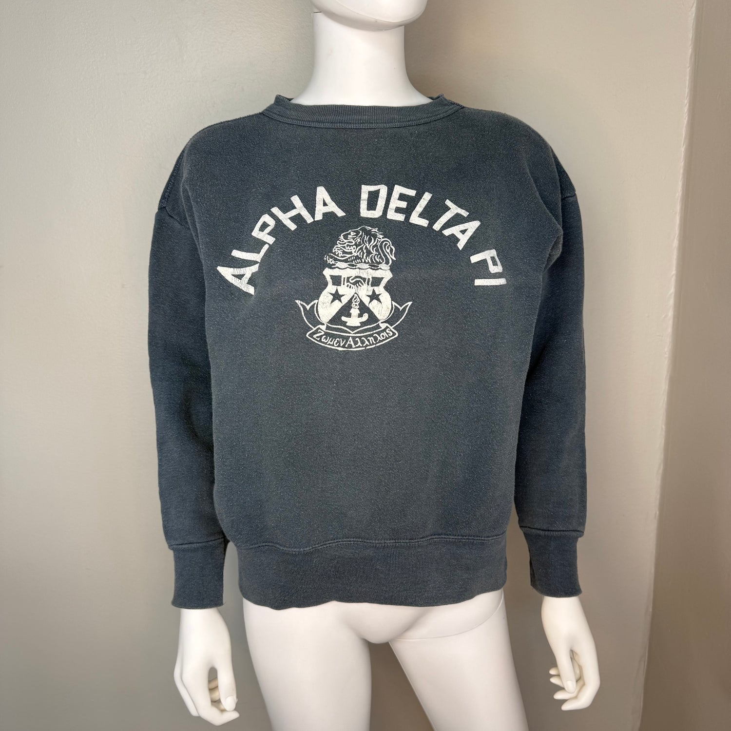 1950s Alpha Delta Pi Sorority Sweatshirt, Faded Navy Blue, Size Medium/Large