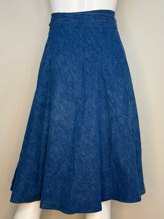 1970s Denim Wrap Midi Skirt, Handmade Size XS-Small