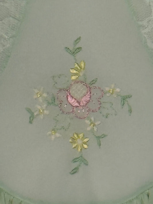 1970s Sheer Pastel Green Nightgown with Floral Embroidery, Shadowline Petite XS/Small, Mint, Nylon