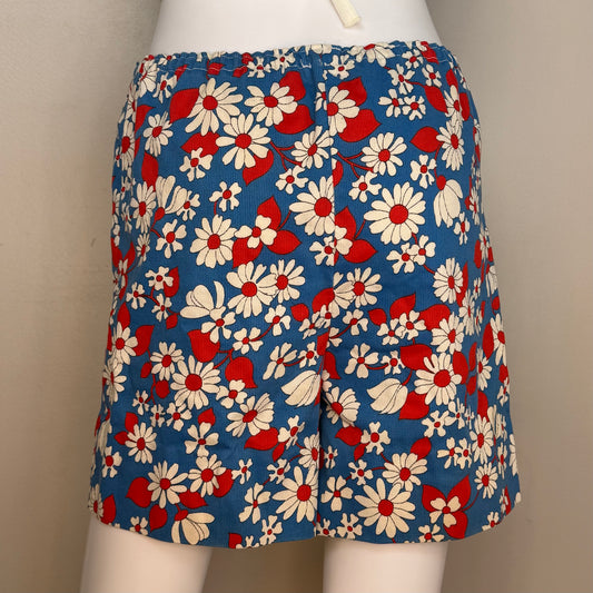 1960s/70s Floral Shorts, Handmade Size XS, Elastic Waist