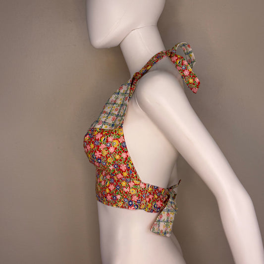 1970s Mixed Floral Floral Halter Top with Collar, De Luxe Fashion Size Small