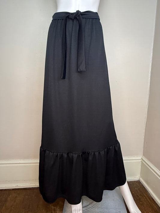 1970s Black Maxi Skirt, Berg-Ray Frocks Size X-Small-Medium, Prairie Style