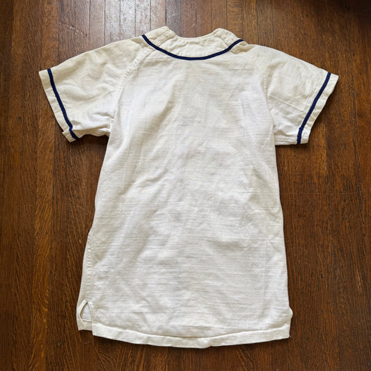 1950s Baseball Jersey, Zip Up Shirt, Russell Southern Co Size Small, Blank White with Blue Trim
