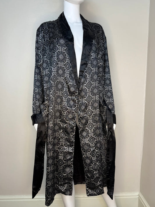 1960s Men’s Black Medallion Print Robe, Smoking Jacket, Sears Size Medium
