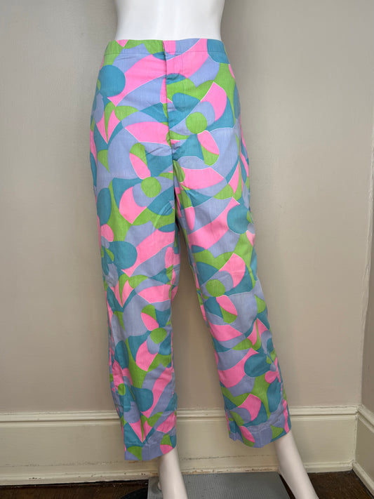1960s Psychedelic Surf Pants, Abstract Print, Size Small-Medium