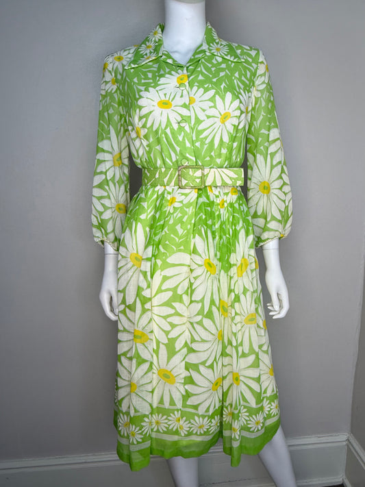 1960s Daisy Shirt Dress, Border Print, Size Medium