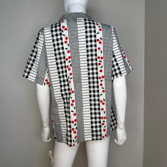 1980s Cherry Print Blouse with Tie at Neck, Lady Diplomat Size Large, Deadstock New With Tags, 80s does 50s