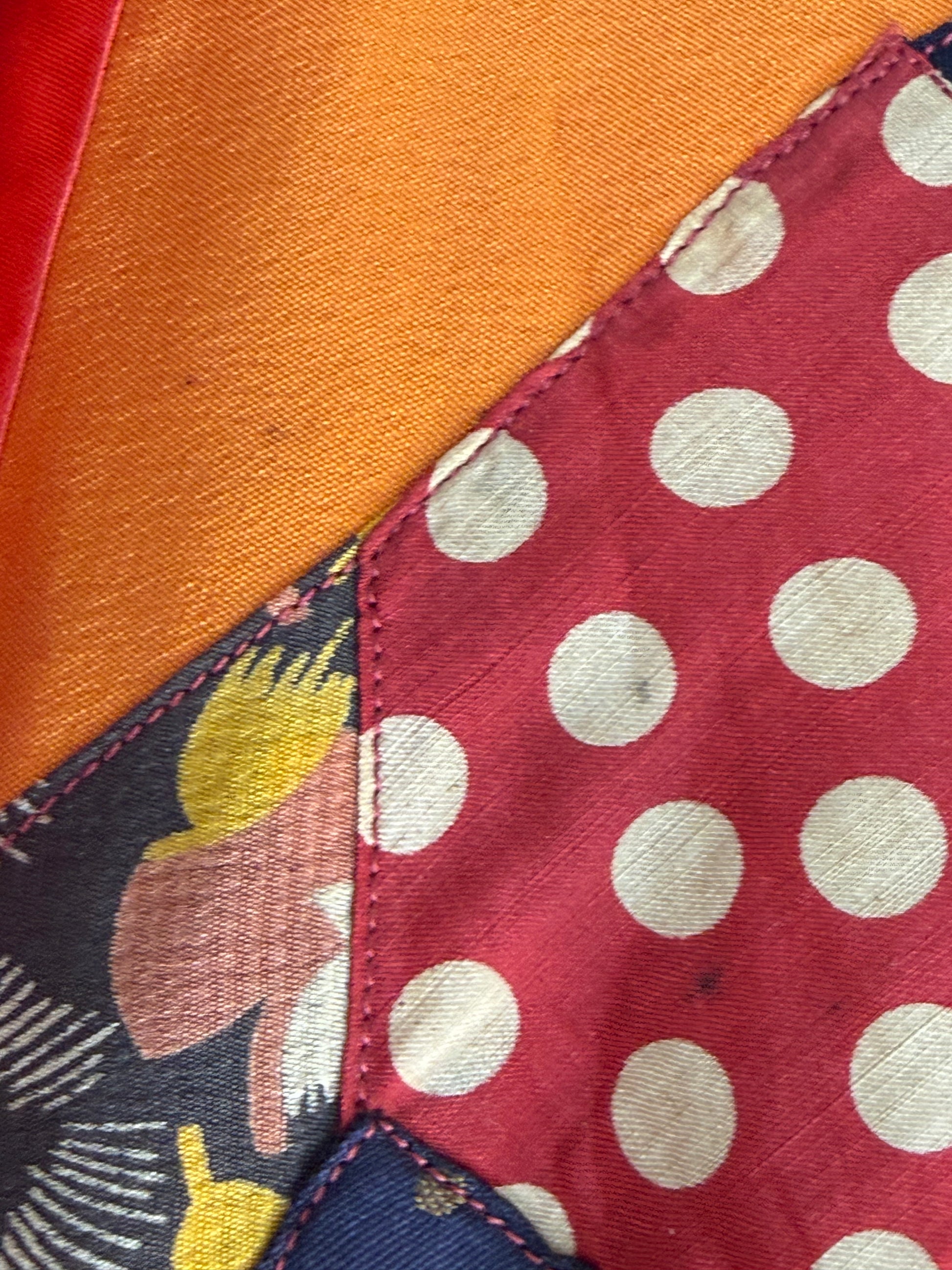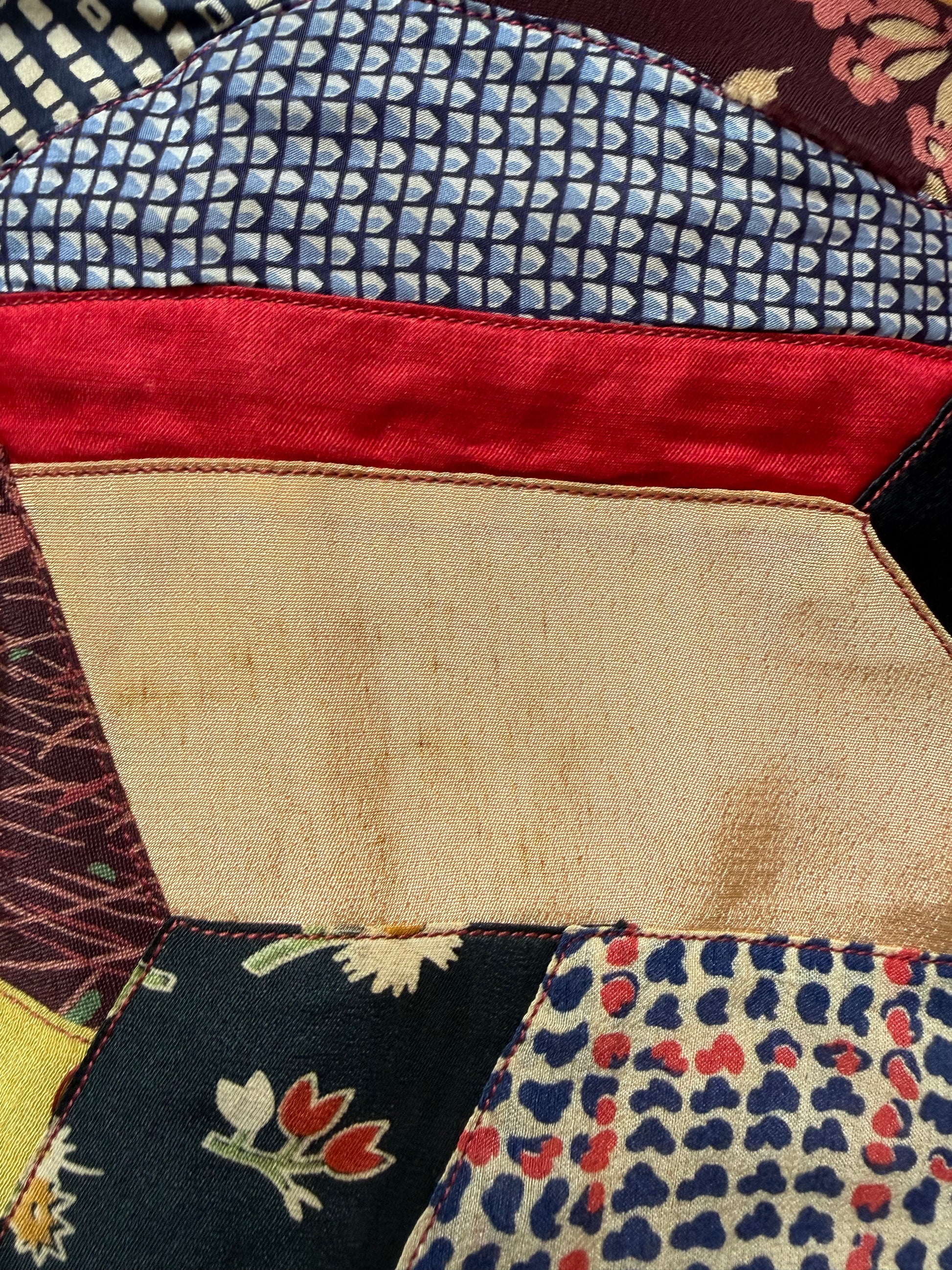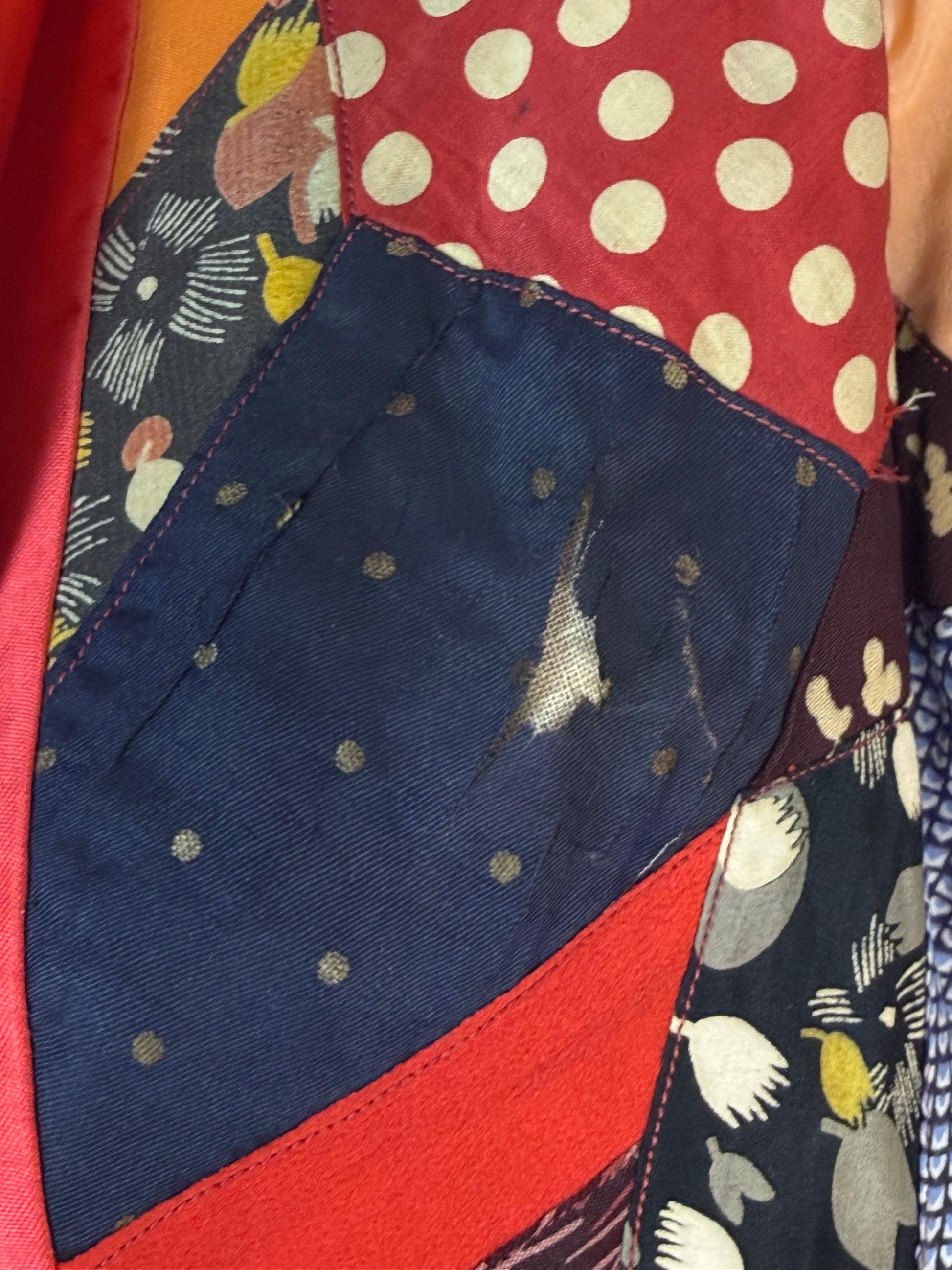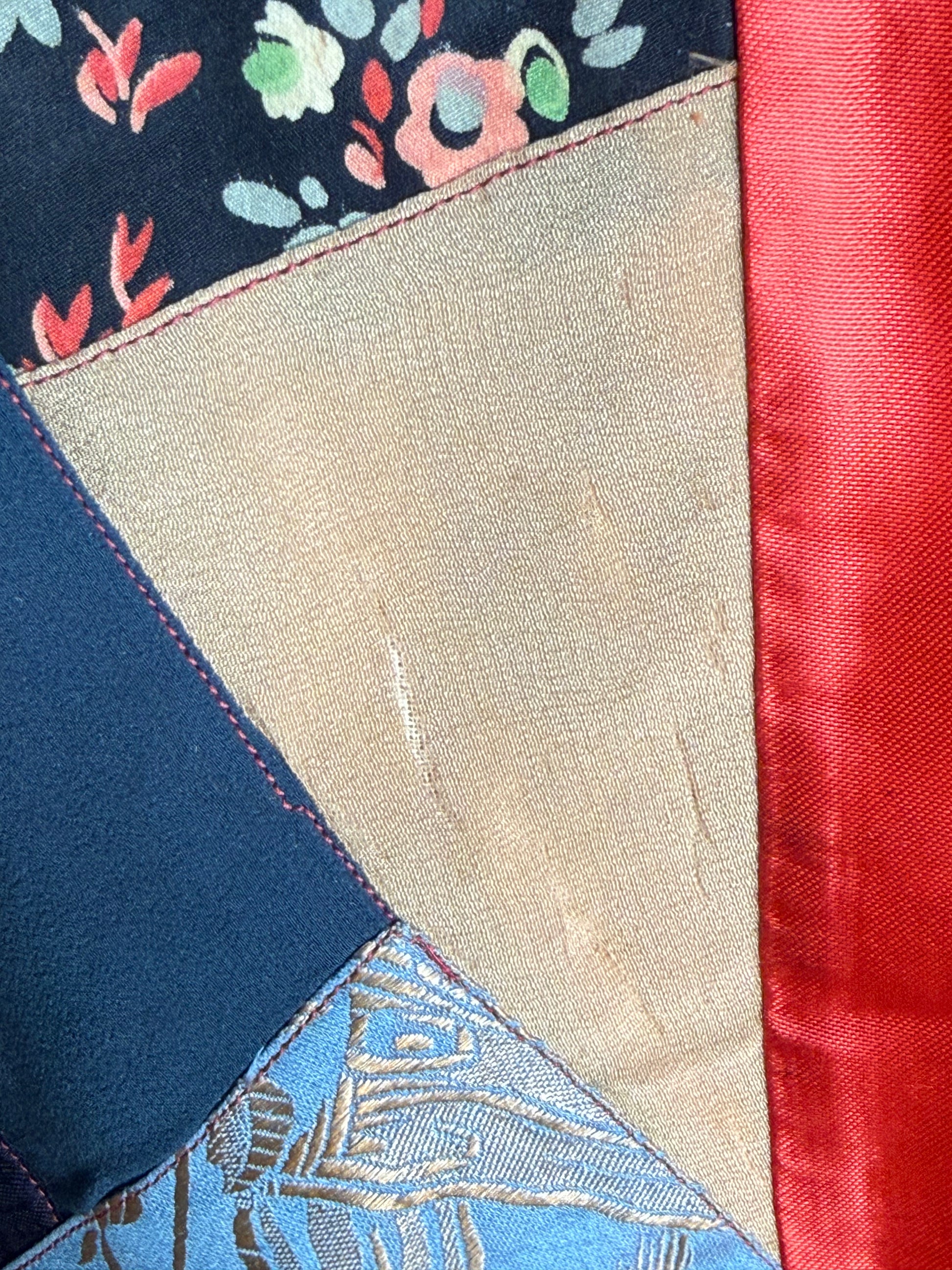 Condition - A couple of the patches are shattered. Most of them still seem to be in strong good condition but the navy polka dot silk is quite damaged. Luckily it seems they only used this fabric for 2 of them. There are a number of small marks as pictured but I do not know how to safely clean this so I am selling it as found.