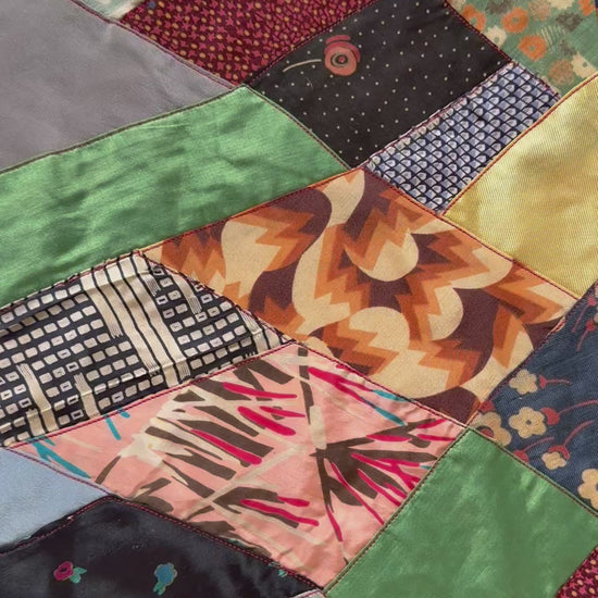 1920s/30s Patchwork Crazy Quilt Robe, Handmade Size XS-Small, Belt with Fringe Trim