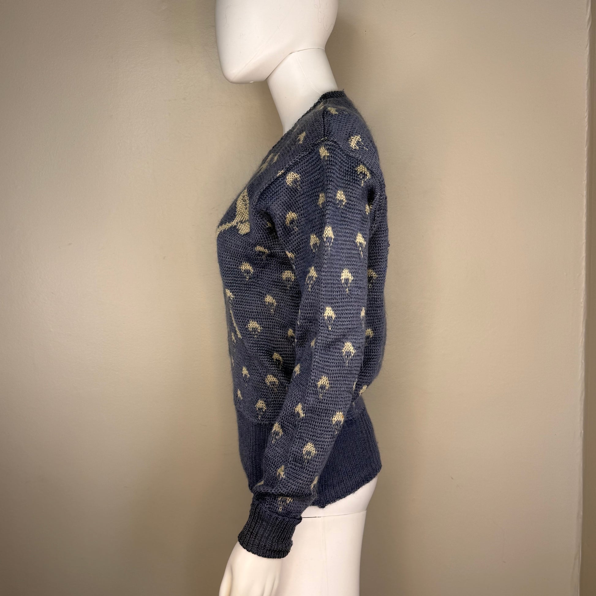 1940s Jantzen P-38 Sweater, Blue, Size 40, WW2 Fighter Jet Plane Novelty Knit