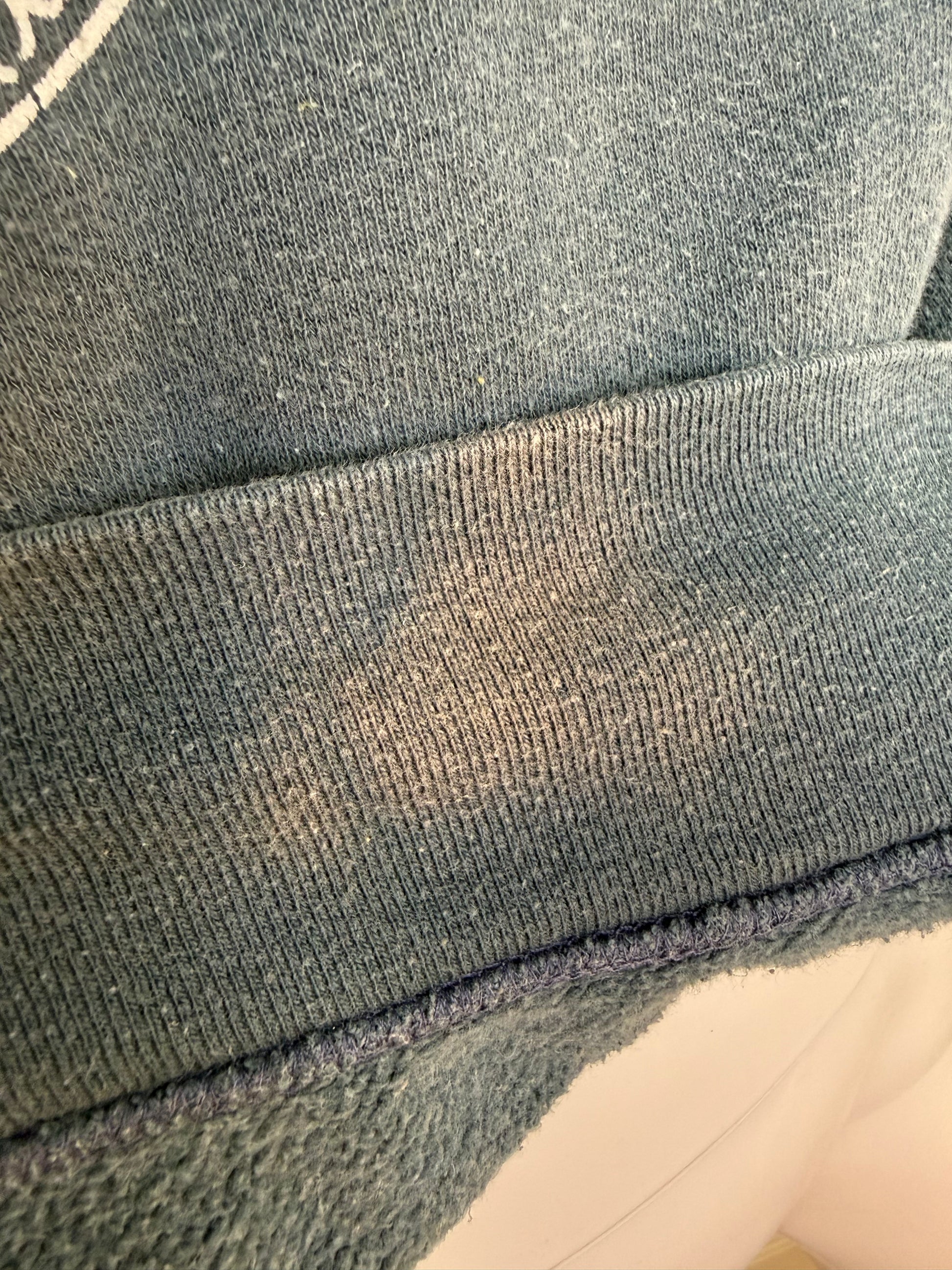 Condition - There is a lot of fading. I found one tiny hole in the sleeve. On the backside of the band there is a spot that looks like a bleach stain. This does not show from the front while you're wearing it though. There are some faint marks on the graphic.