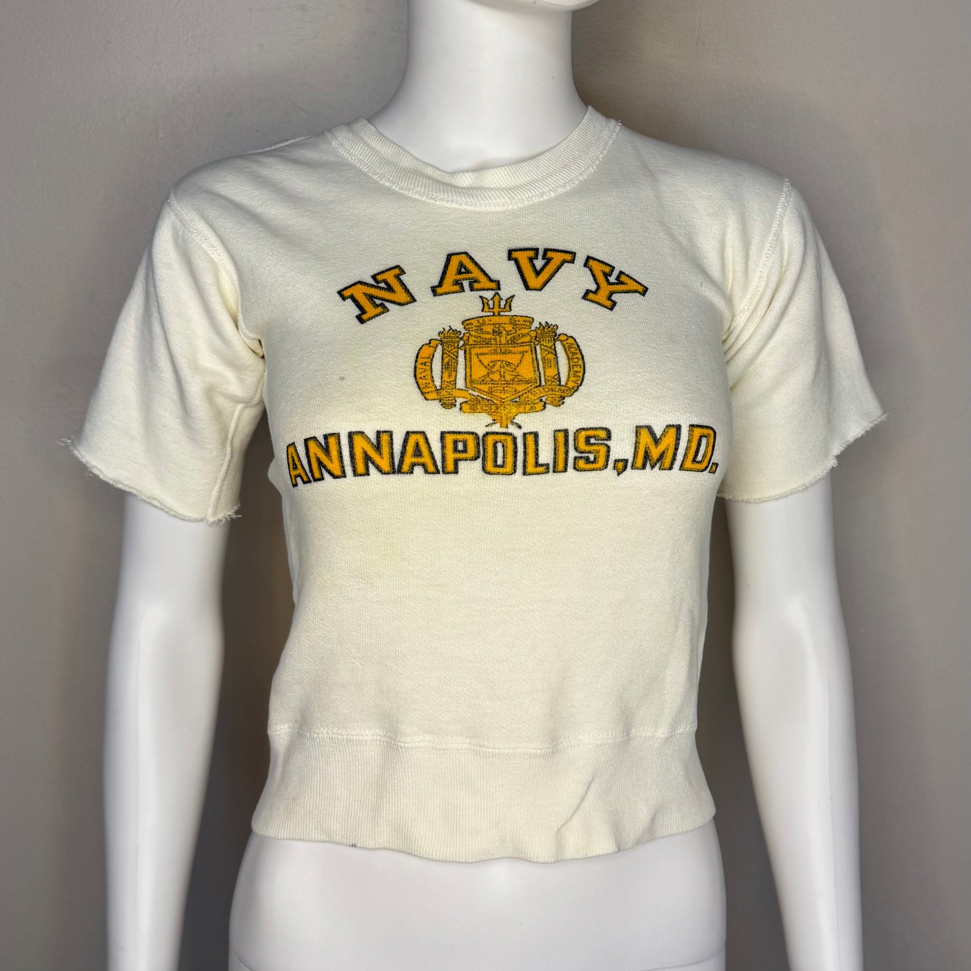 Description - US Naval Academy sweatshirt from the 50s. Someone chopped the sleeves off