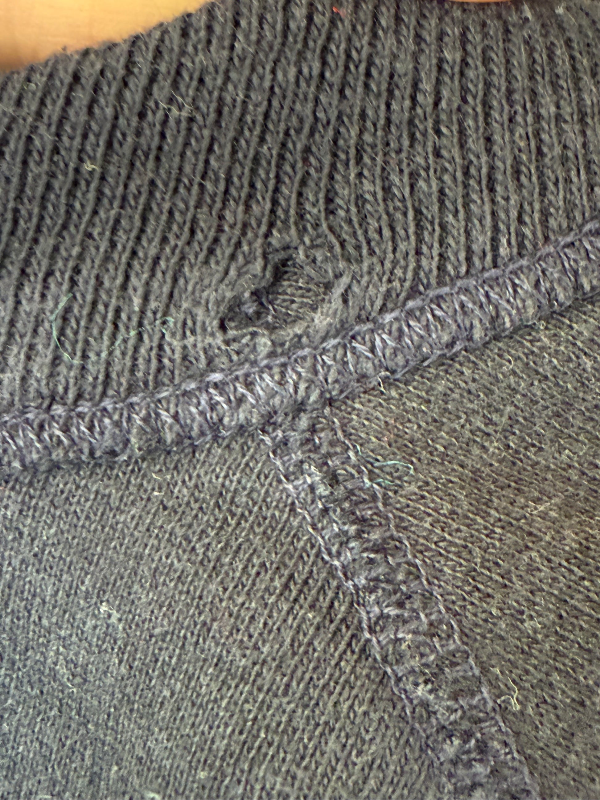 Condition - There is a little bit of wear on the flocked print and I found a small hole in the back at the neck band.