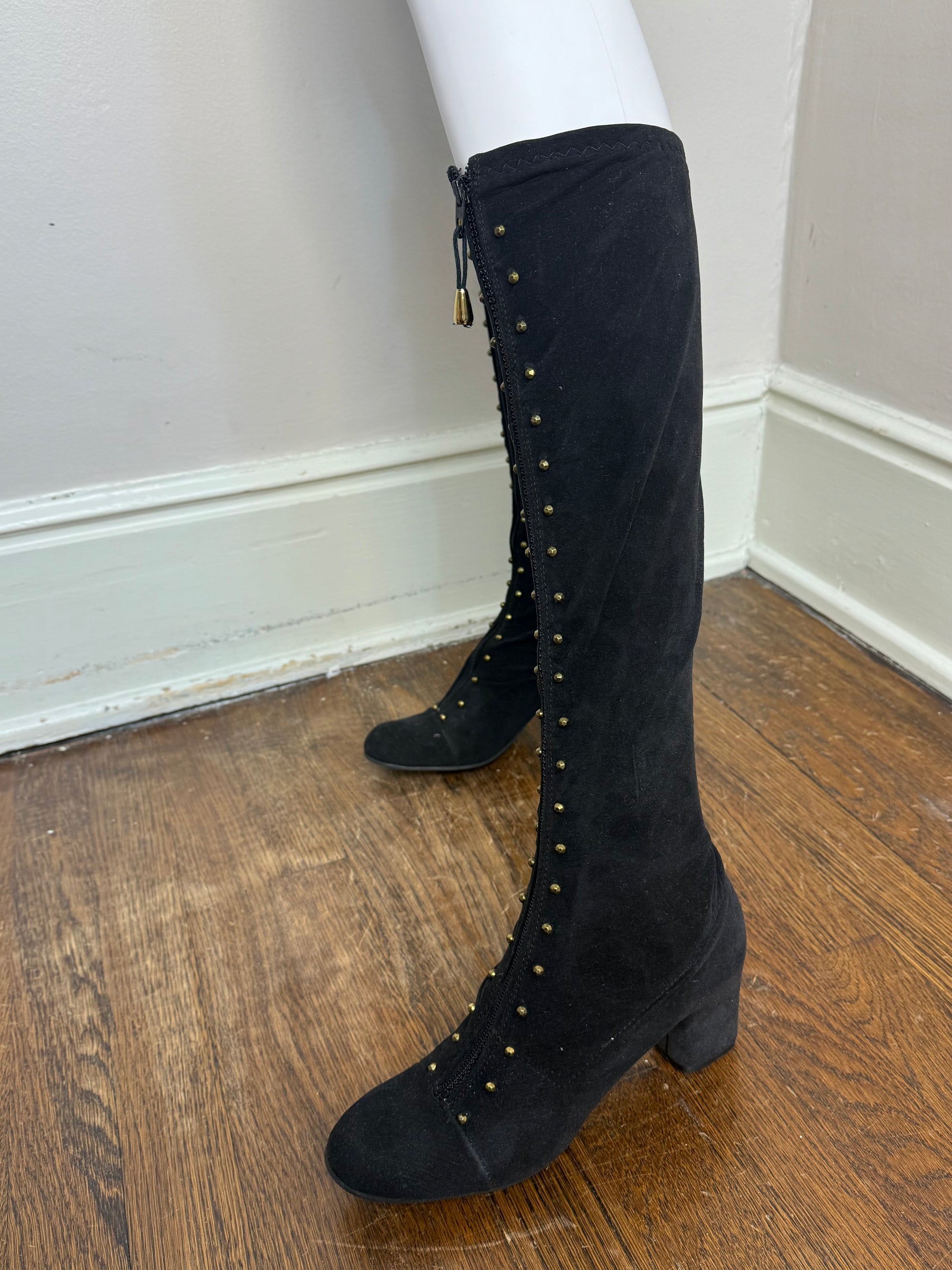 1960s/70s Black Velvet Studded Go go Boots, Riviera’s Size 7 1/2 Narrow