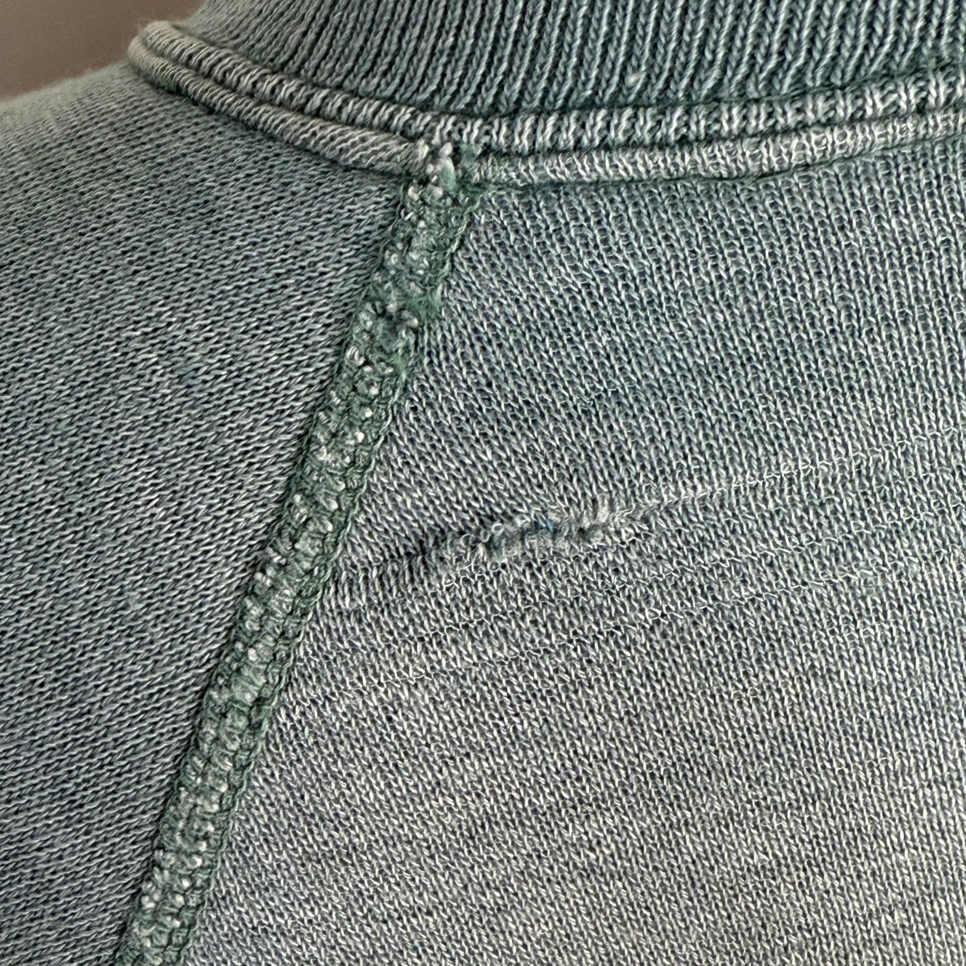 Description - Really nice faded green color raglan sleeve crewneck sweatshirt from the 60s or 70s with Miss State printed on the chest. It is on the thinner side and has under arm gussets.