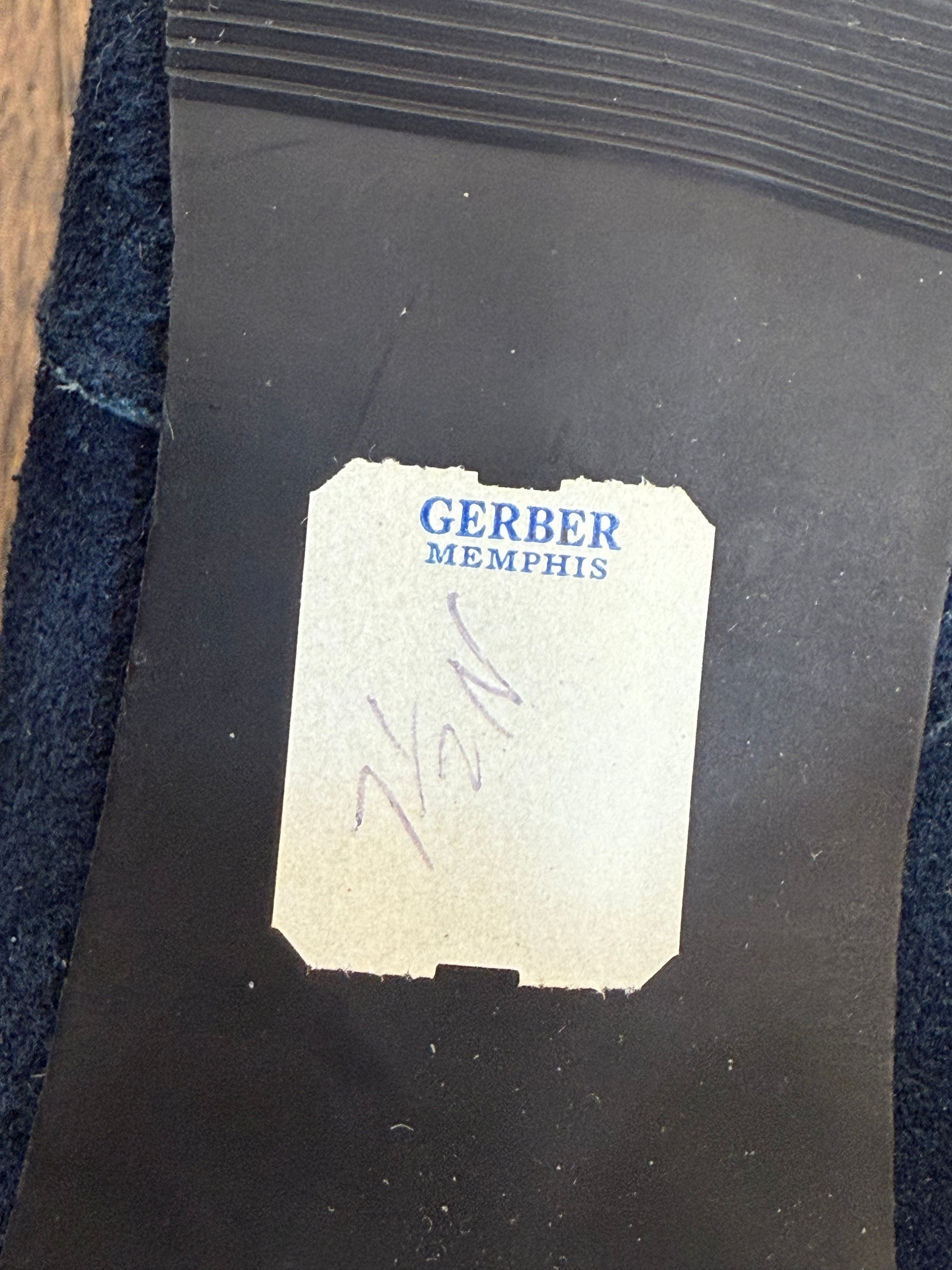 Condition - These appear to be pretty much unworn with the original box and an original store tag from Gerber Memphis on the bottom of one boot. There are some marks in the leather from them being boxed up for years. The metal eyelets in the lacings have some discoloration. There is a small amount of dirt on the bottom of the shoe so maybe someone tried them on but the insides don't show wear.