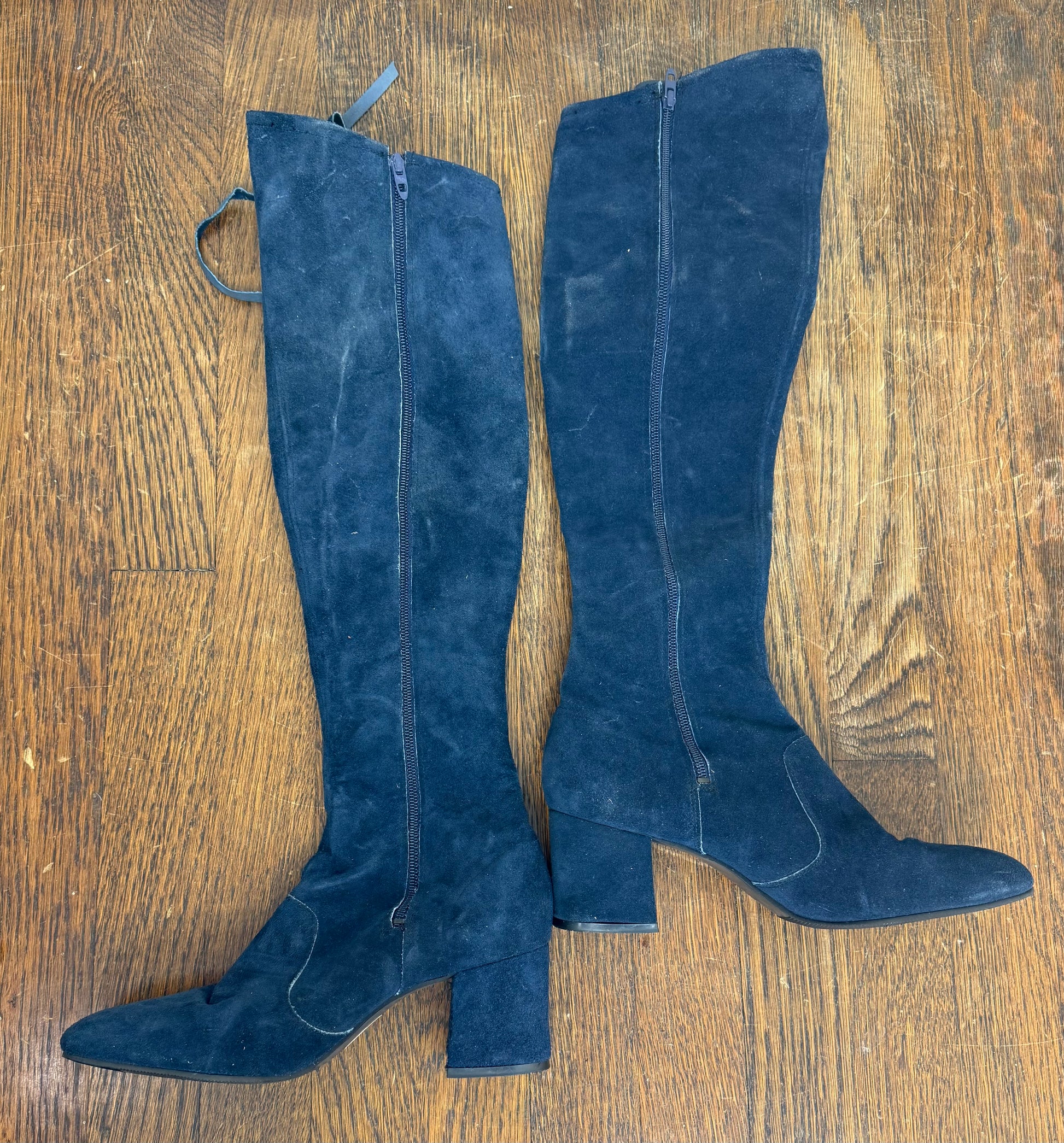 1960s/70s Navy Blue Leather Lace Up Go go Boots, Riviera’s Size 7 1/2 Narrow