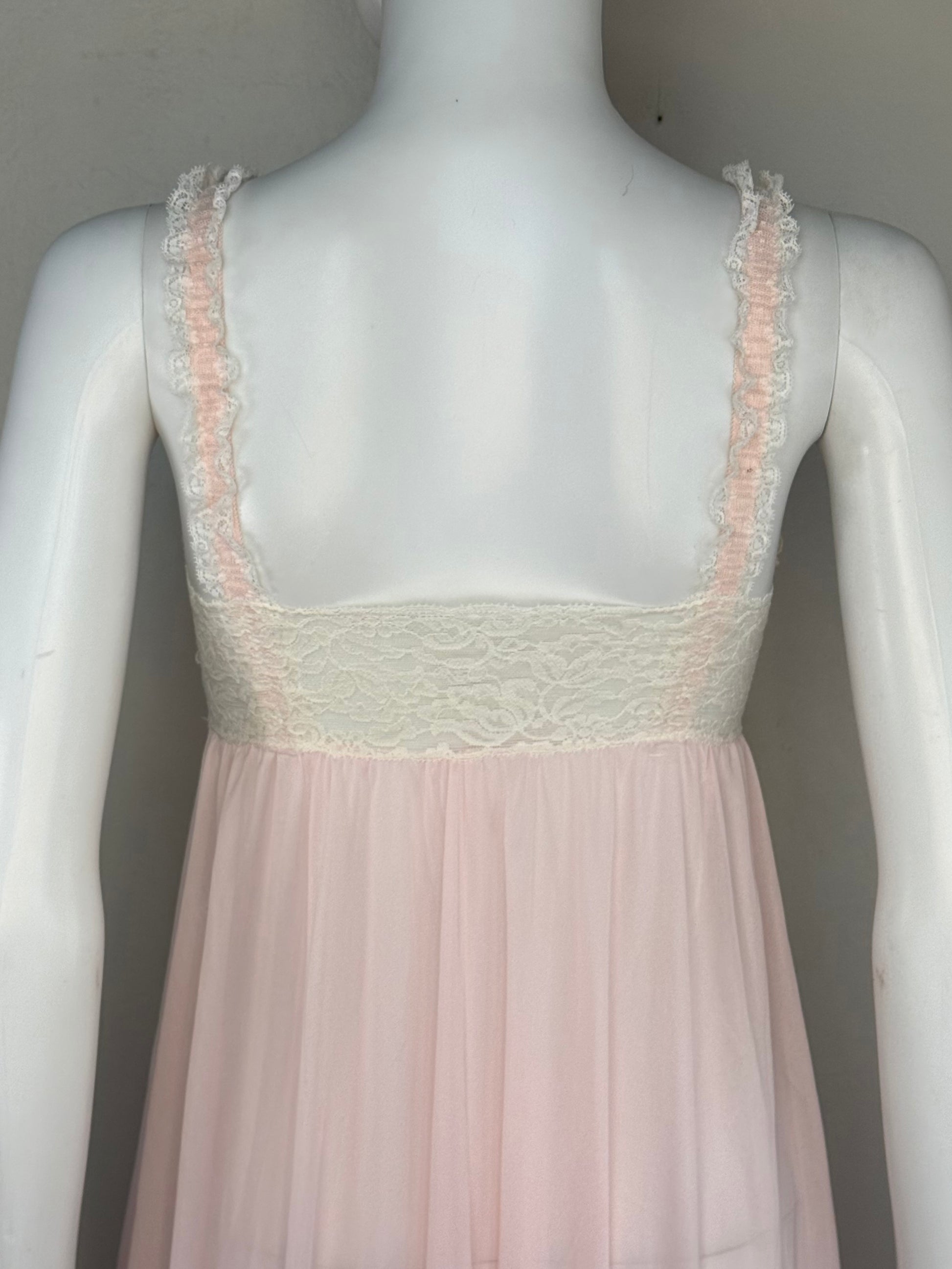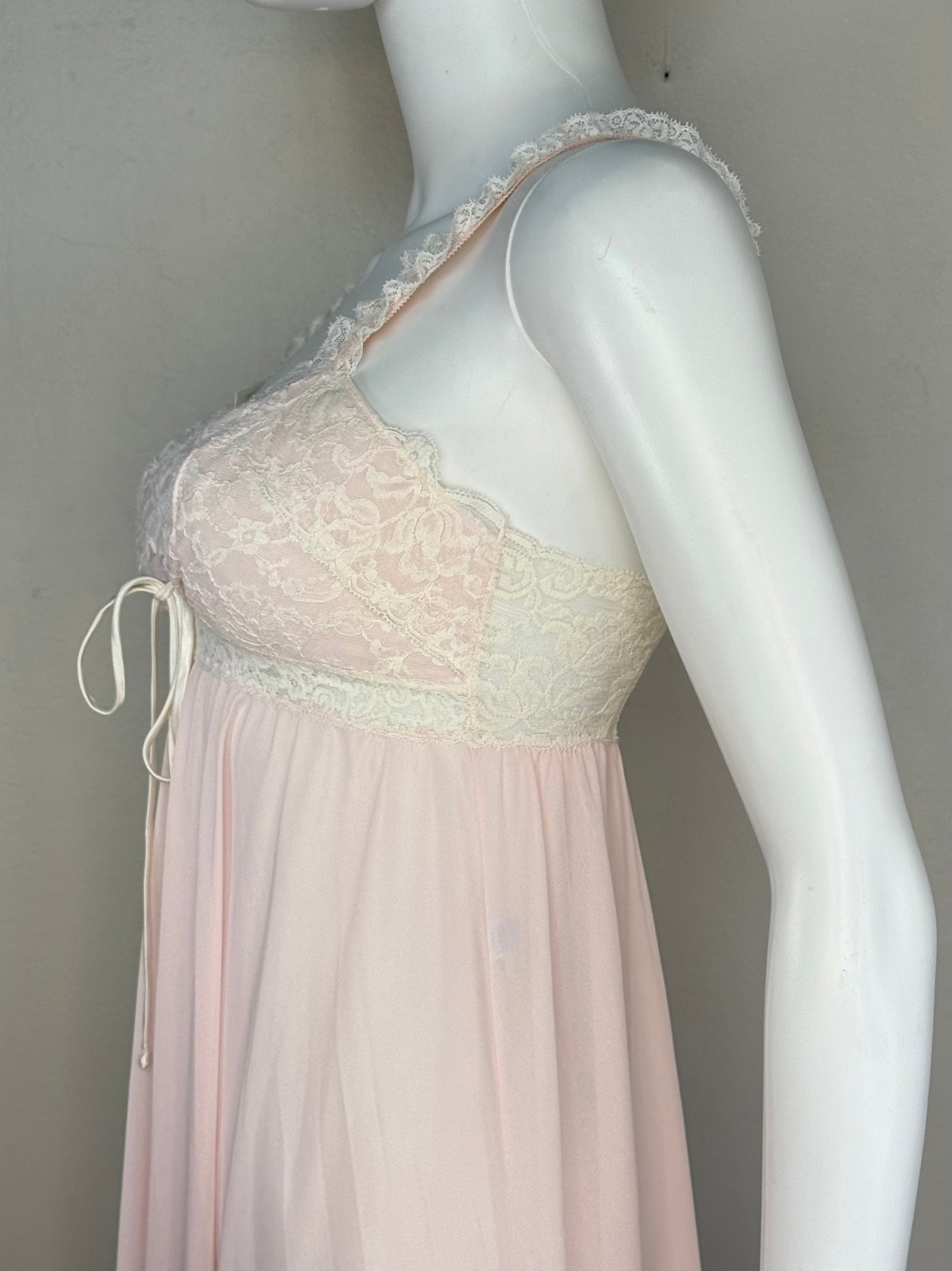 1960s/70s Olga Sleeping Pretty Nightgown, Pastel Pink, Size 34, Full Length