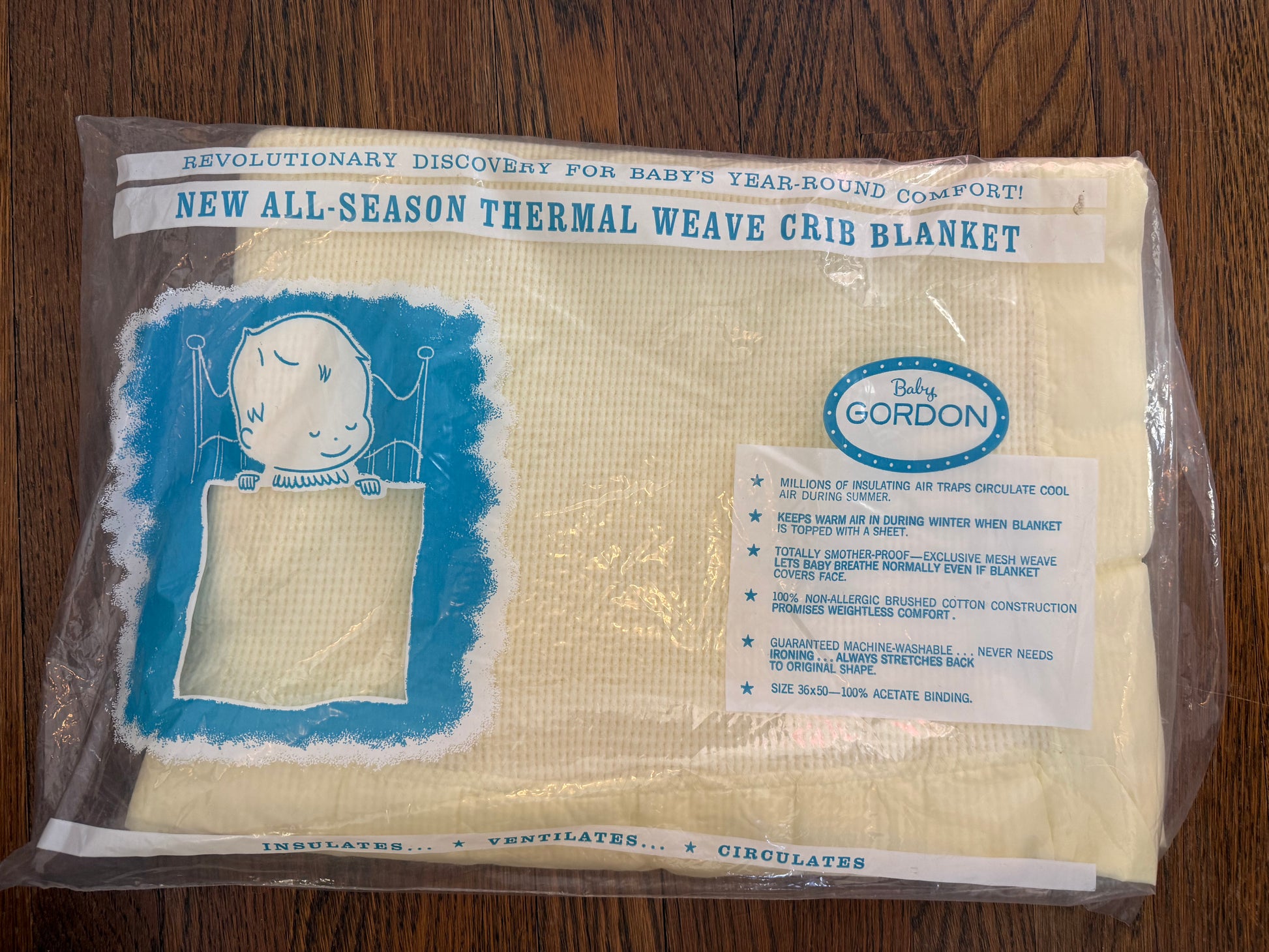 Revolutionary discovery for baby's year-round comfort! New all-season thermal weave crib blanket. Insulates - Ventilates - Circulates