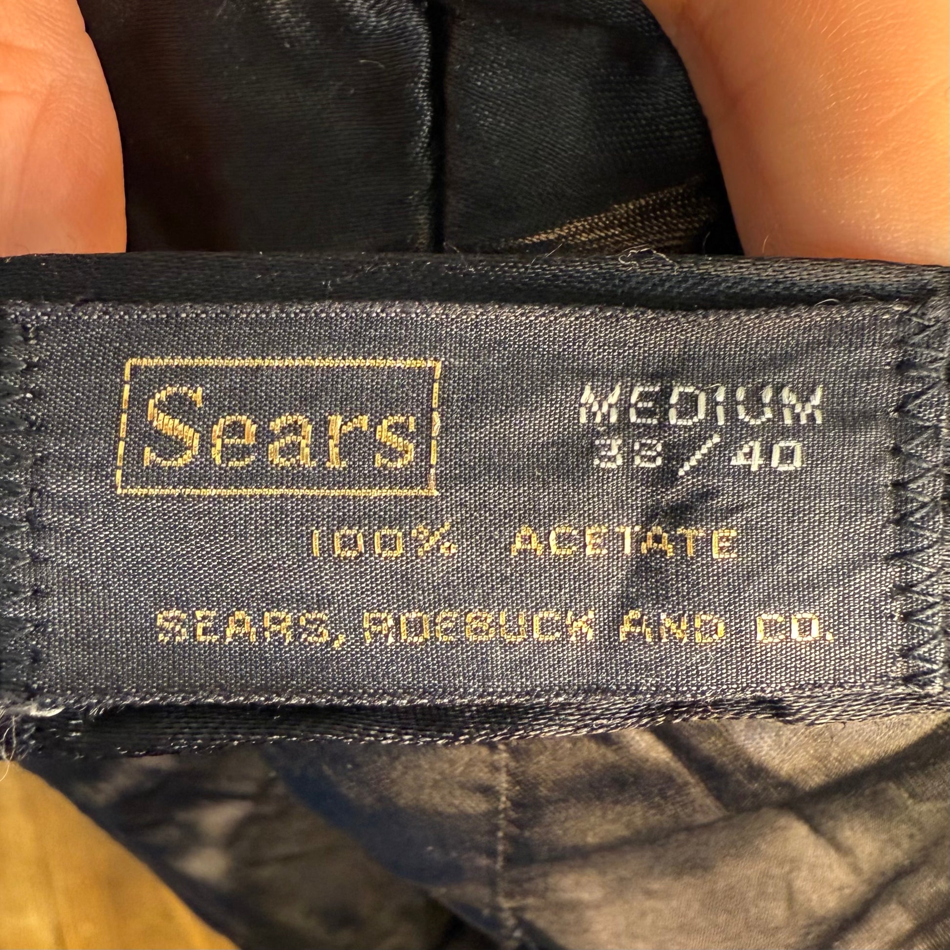 1960s Men’s Black Medallion Print Robe, Smoking Jacket, Sears Size Medium