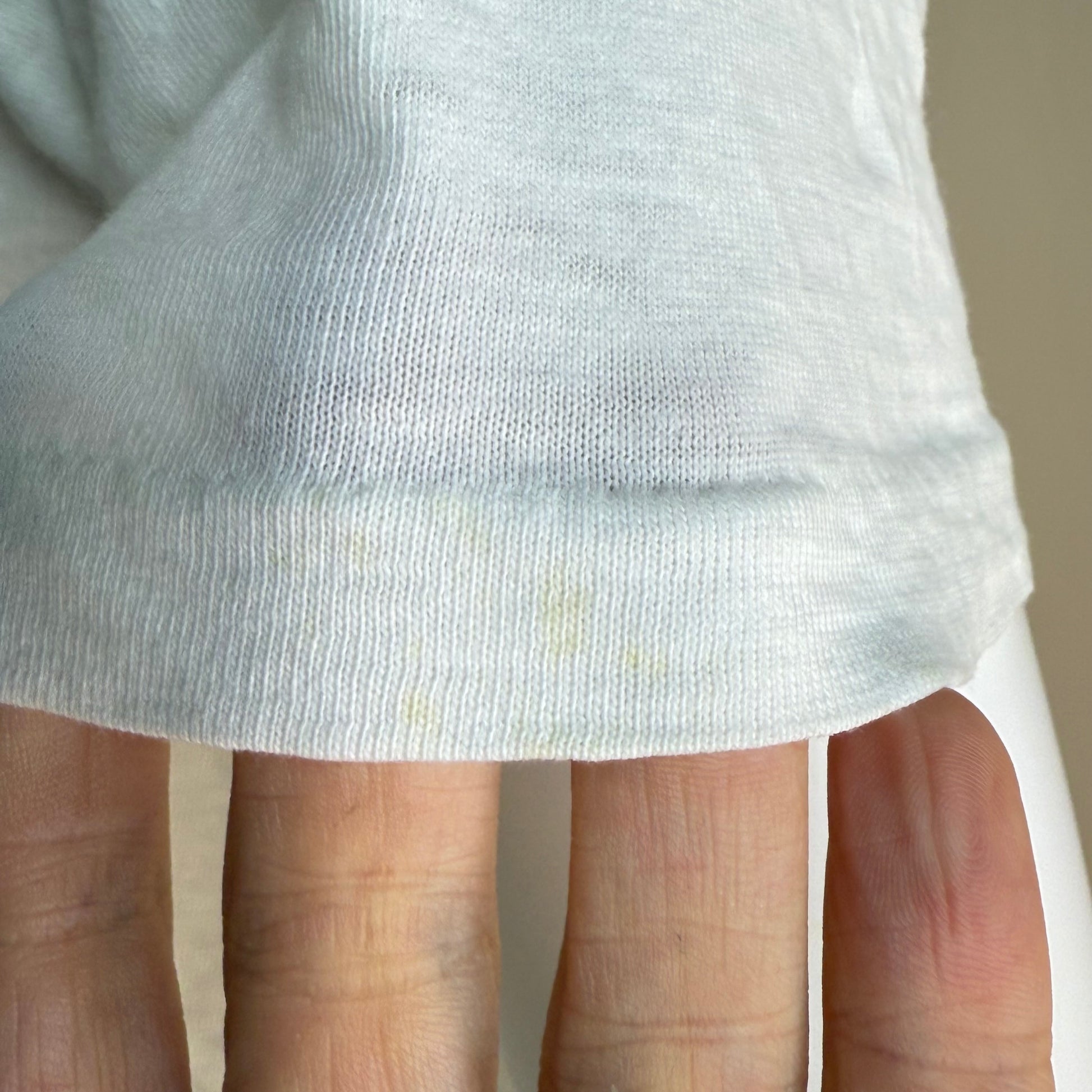 Description - White Preston Hollow School tee from the 60s (I found it at an estate sale with a BSA tee dated 1960 so I'm guessing it's the same era although I'm not familiar with the brand) It's a soft and thin single stitch shirt.
