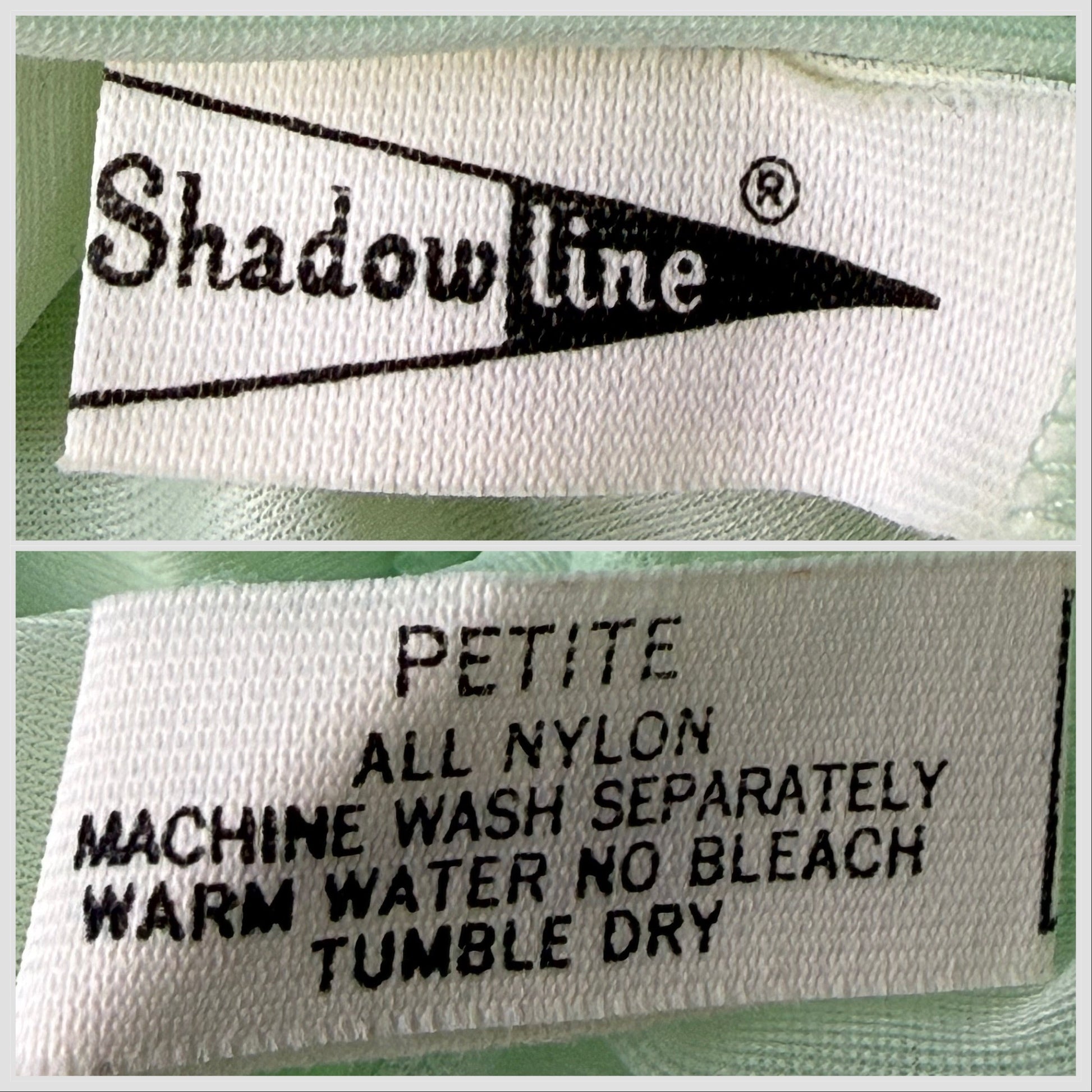 1970s Sheer Pastel Green Nightgown with Floral Embroidery, Shadowline Petite XS/Small, Mint, Nylon