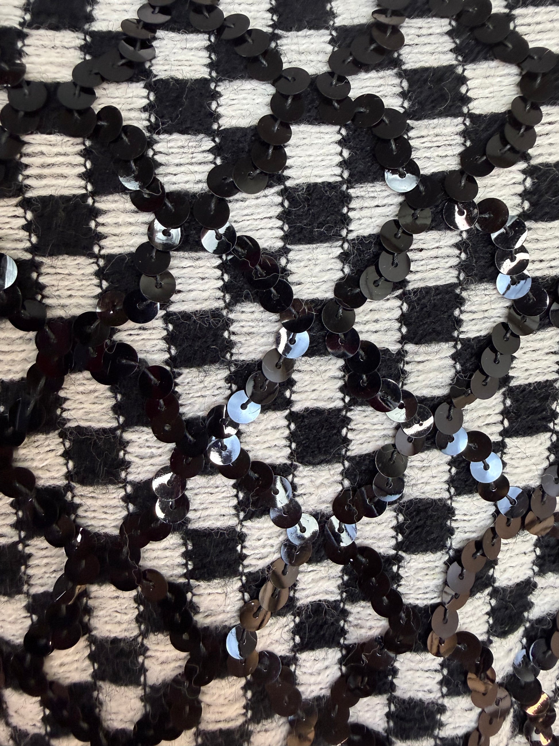 1960s/70s Sequin Mod Dress, Black and White Check, Size X-Small