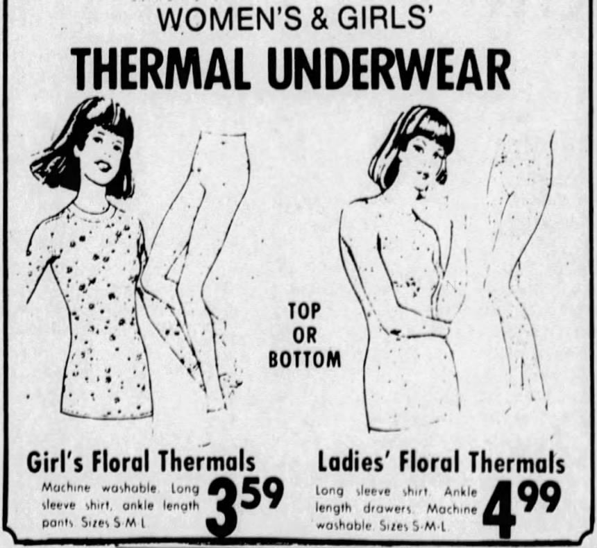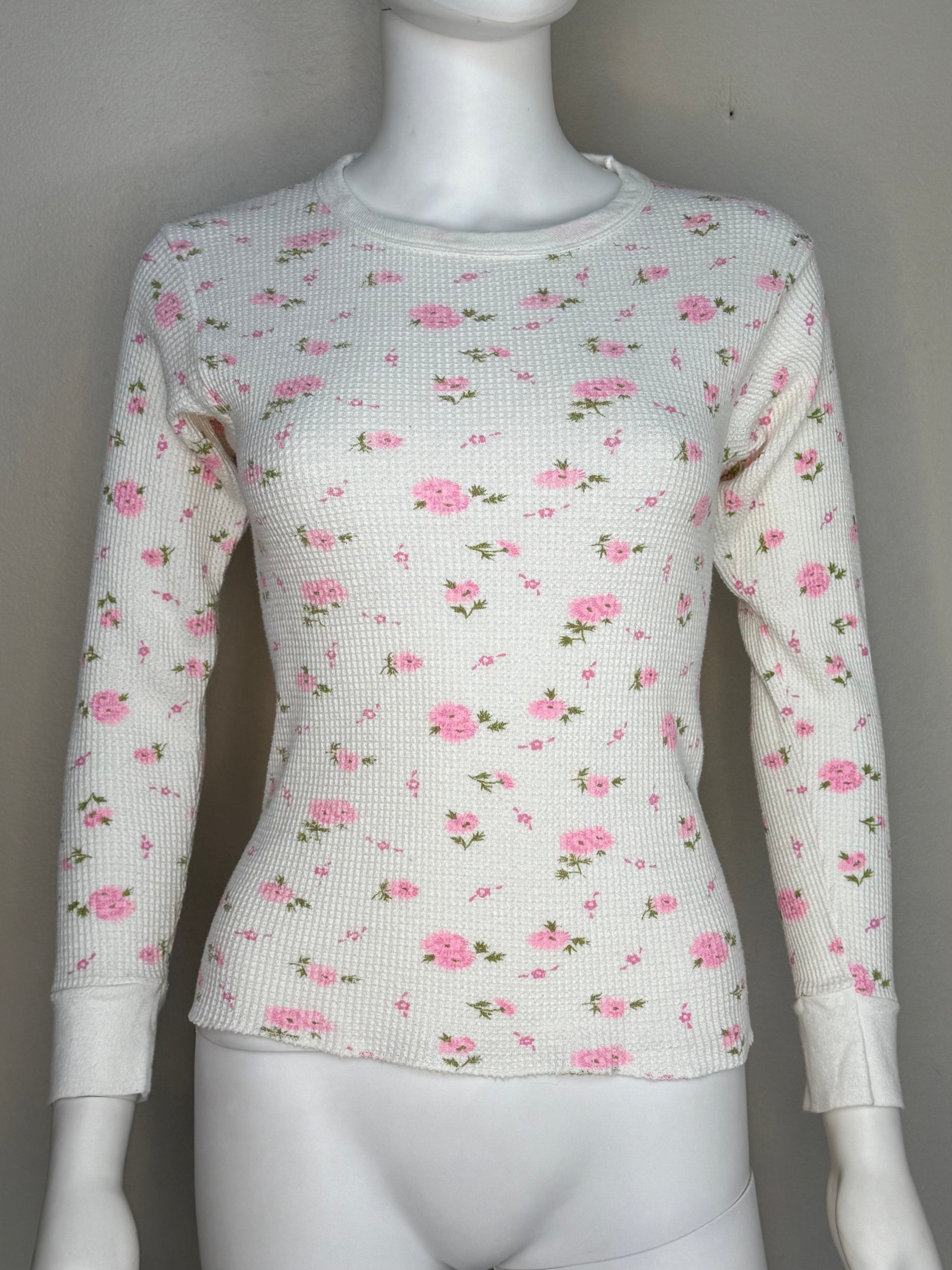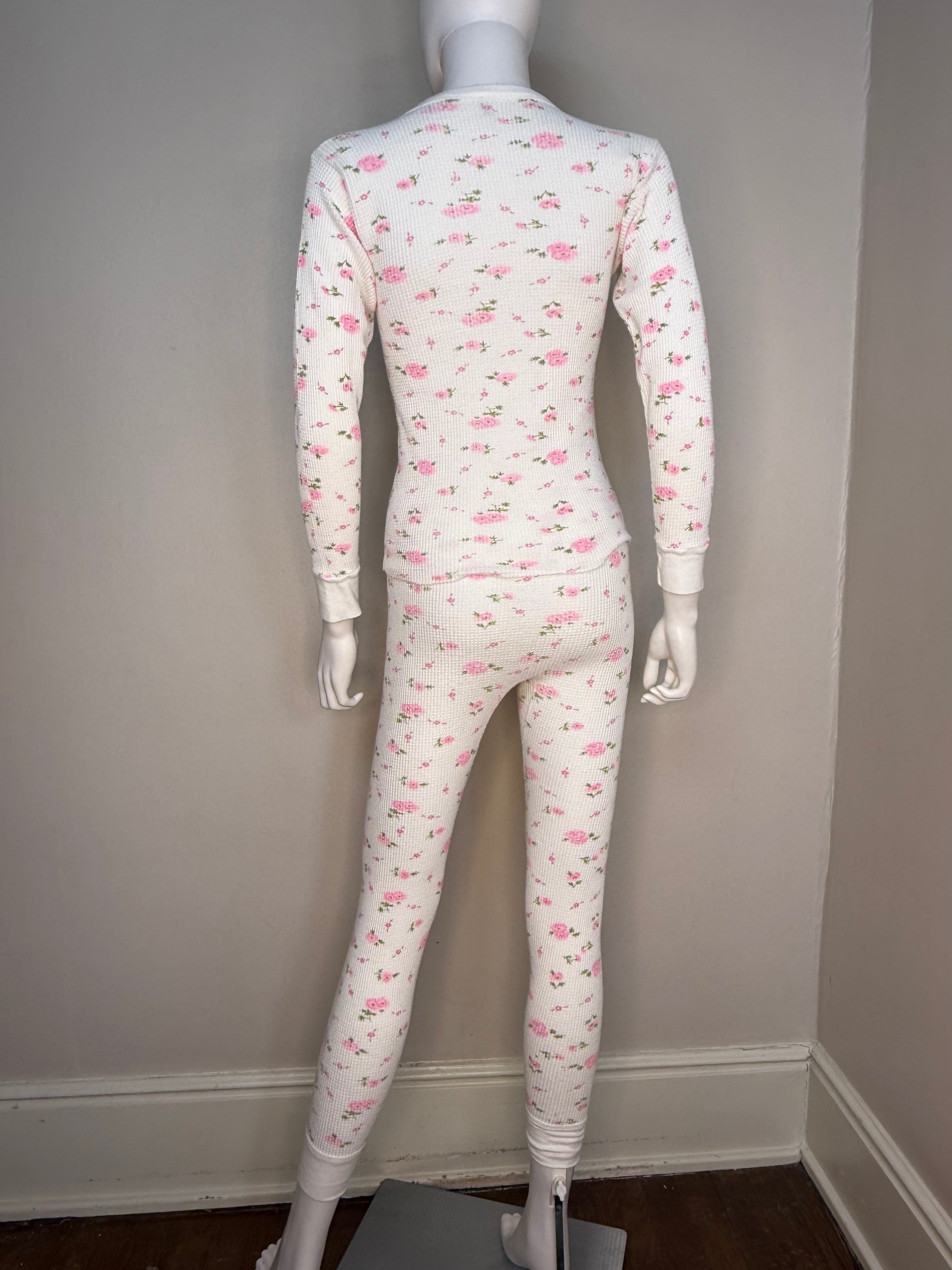 Description - Floral waffle knit thermal shirt and pants long underwear set from the 70s or 80s. (The shirt definitely has Eleven vibes from season 4 of Stranger Things!)