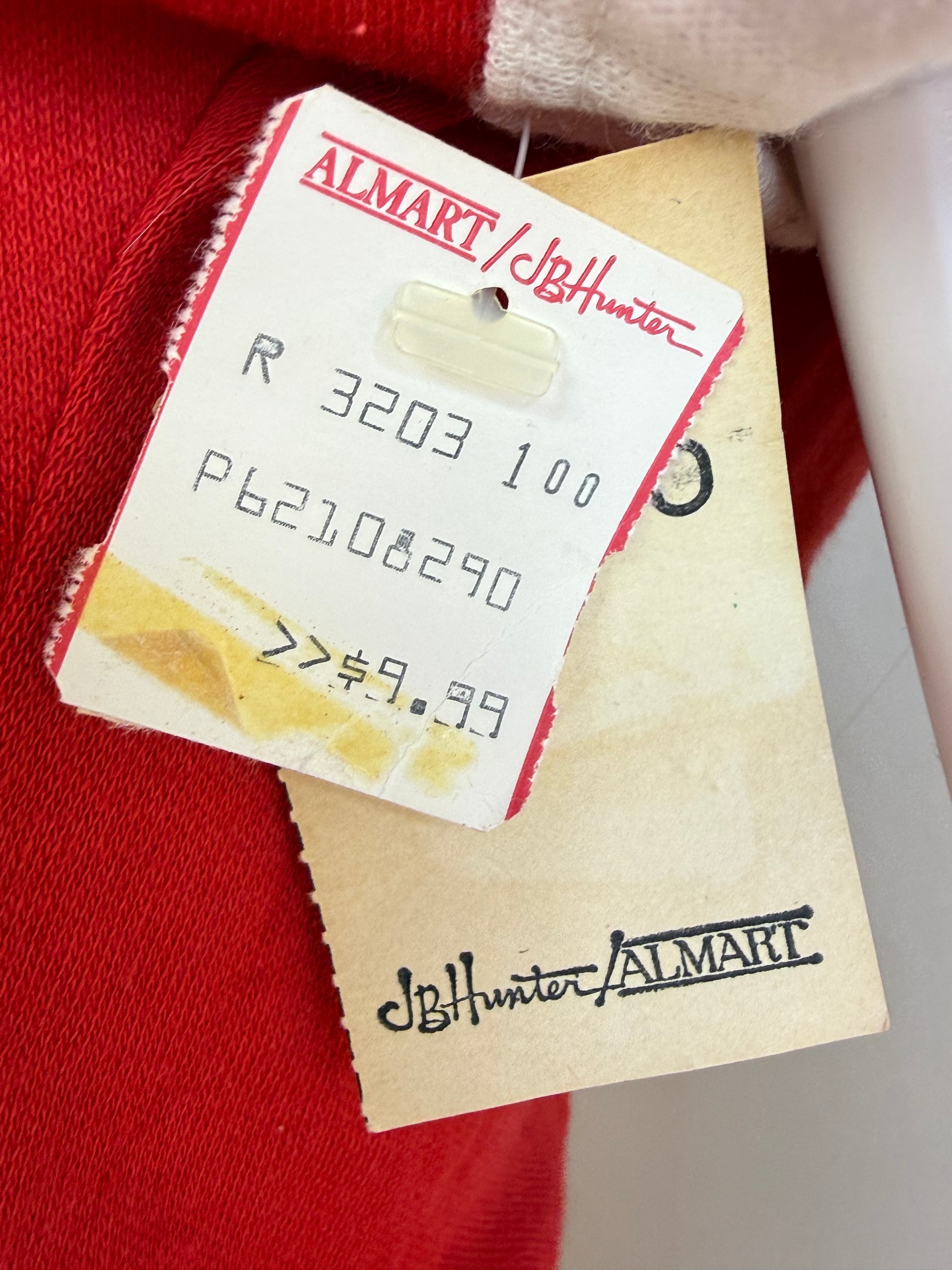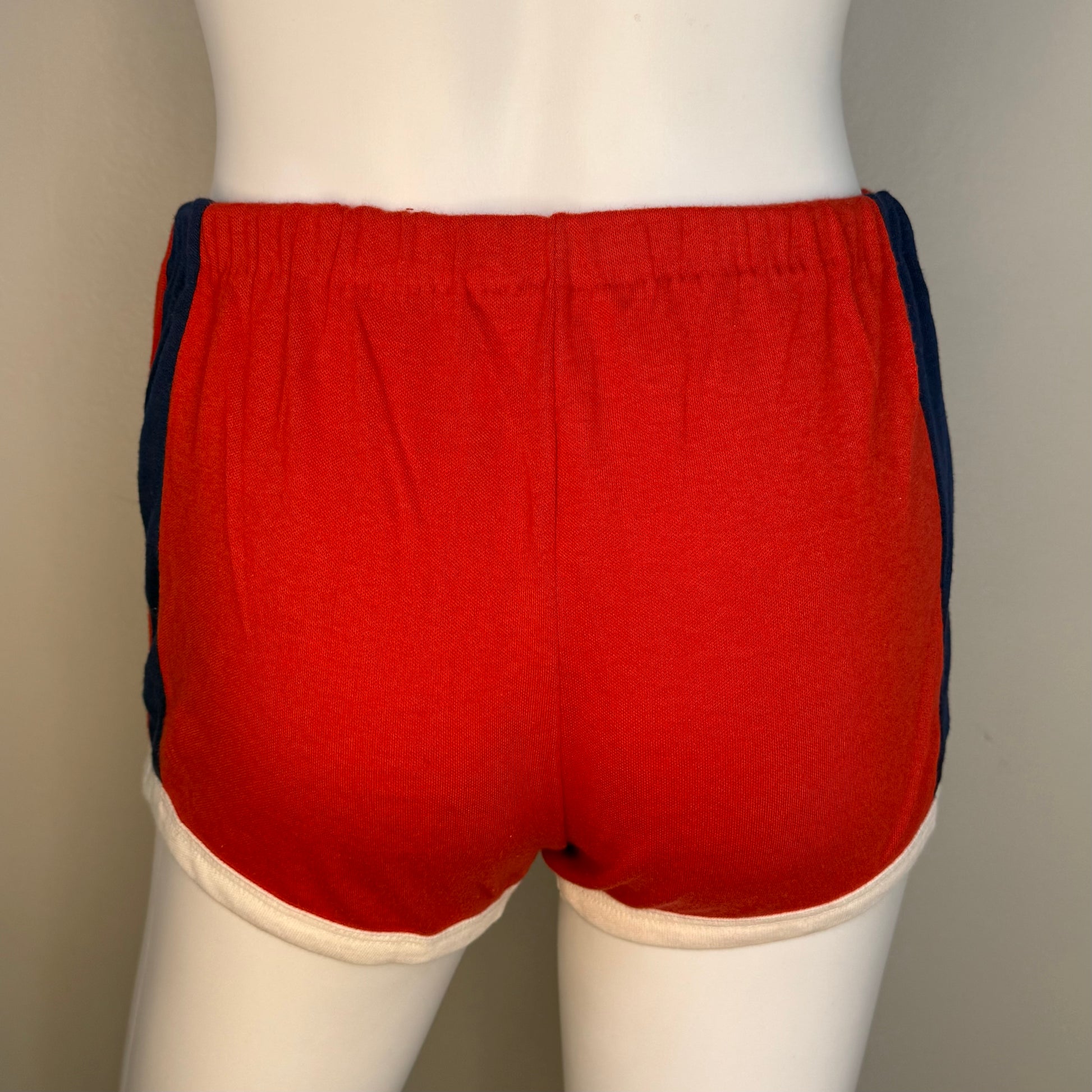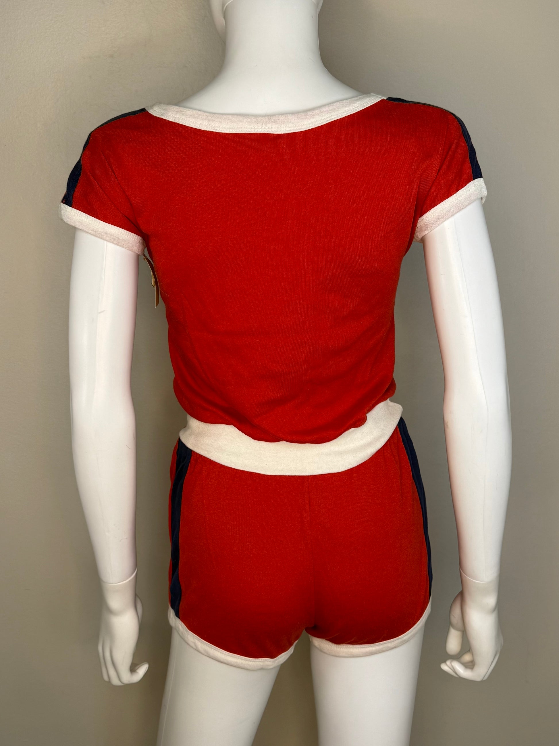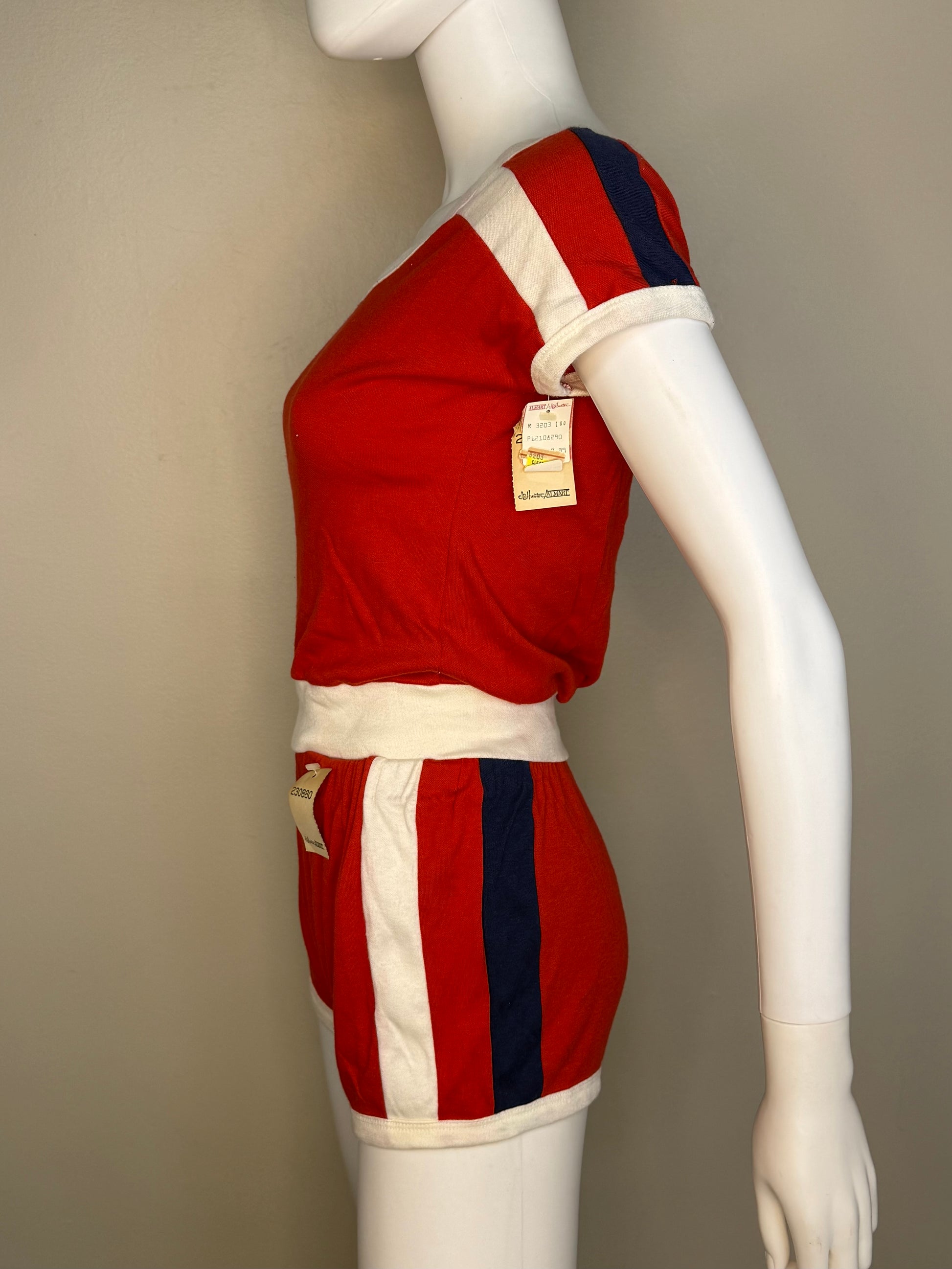 1970s/80s Red Knit Top and Shorts Set with Blue and White Stripes, Size XS-Small, Deadstock