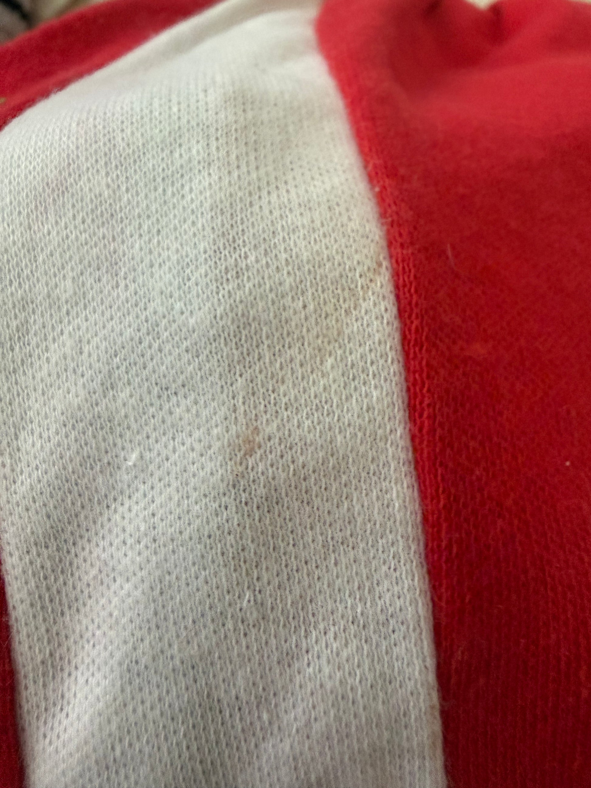Condition - Brand new with original tags attached but there are some spots on the top that look like faint color bleed. The shorts had completely shot elastic so I added in a new one. There is a small dirty spot on the white stripe on the shorts but I'm guessing this will come out once they are washed.