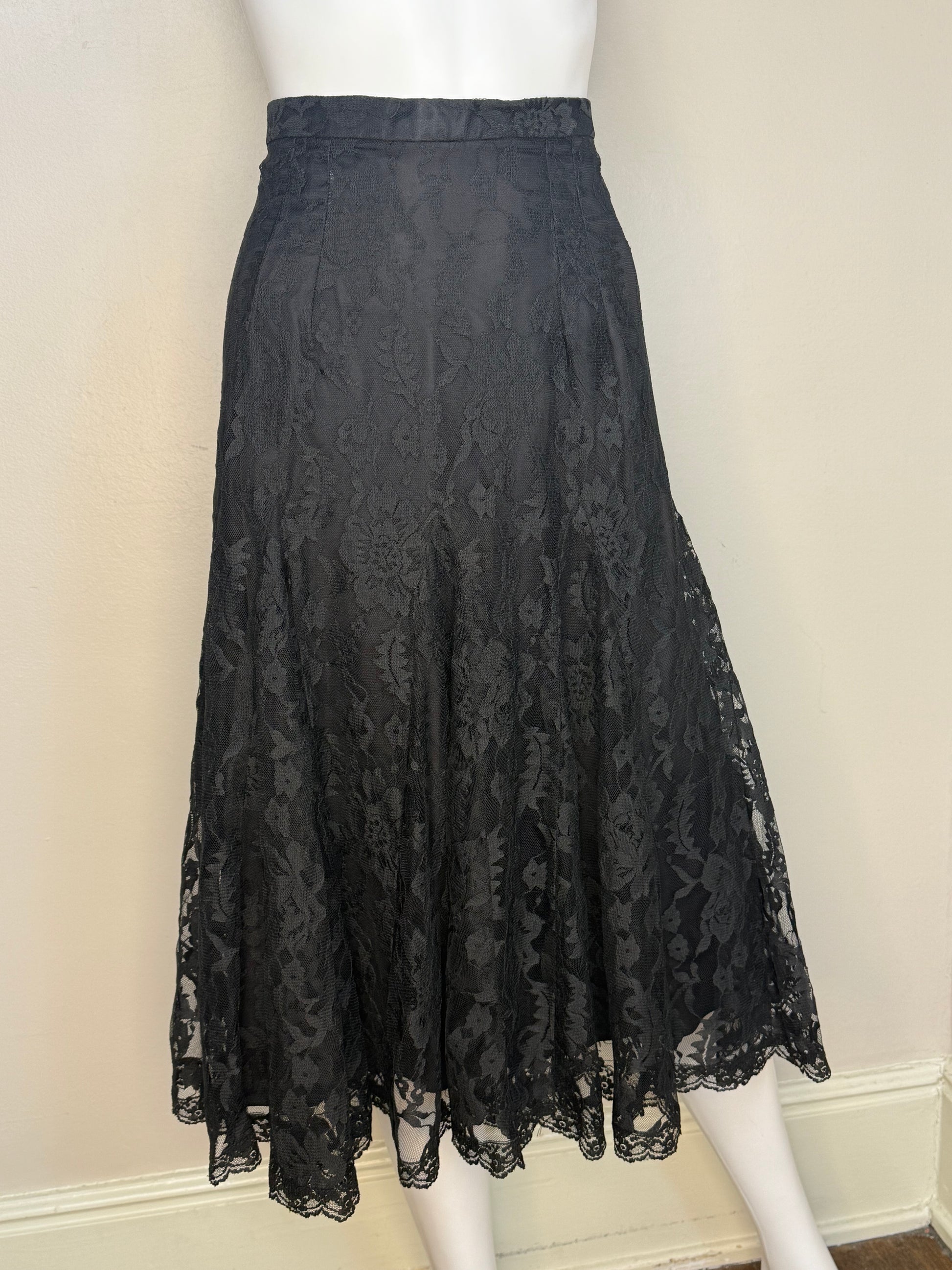 1970s Black Lace Midi Trumpet Skirt, Size XS