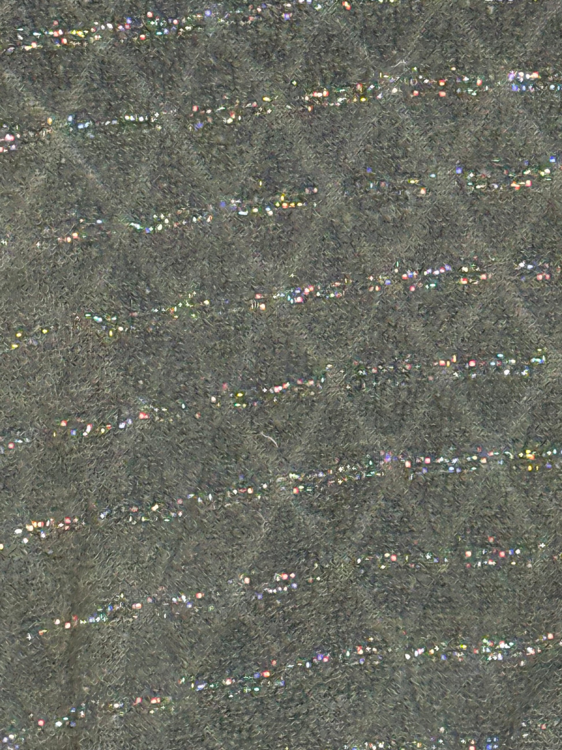 Description - Black terrycloth long sleeve polo sweater from the 1970s or 80s. The fabric has a diamond texture and metallic stripes. It has 3 buttons.