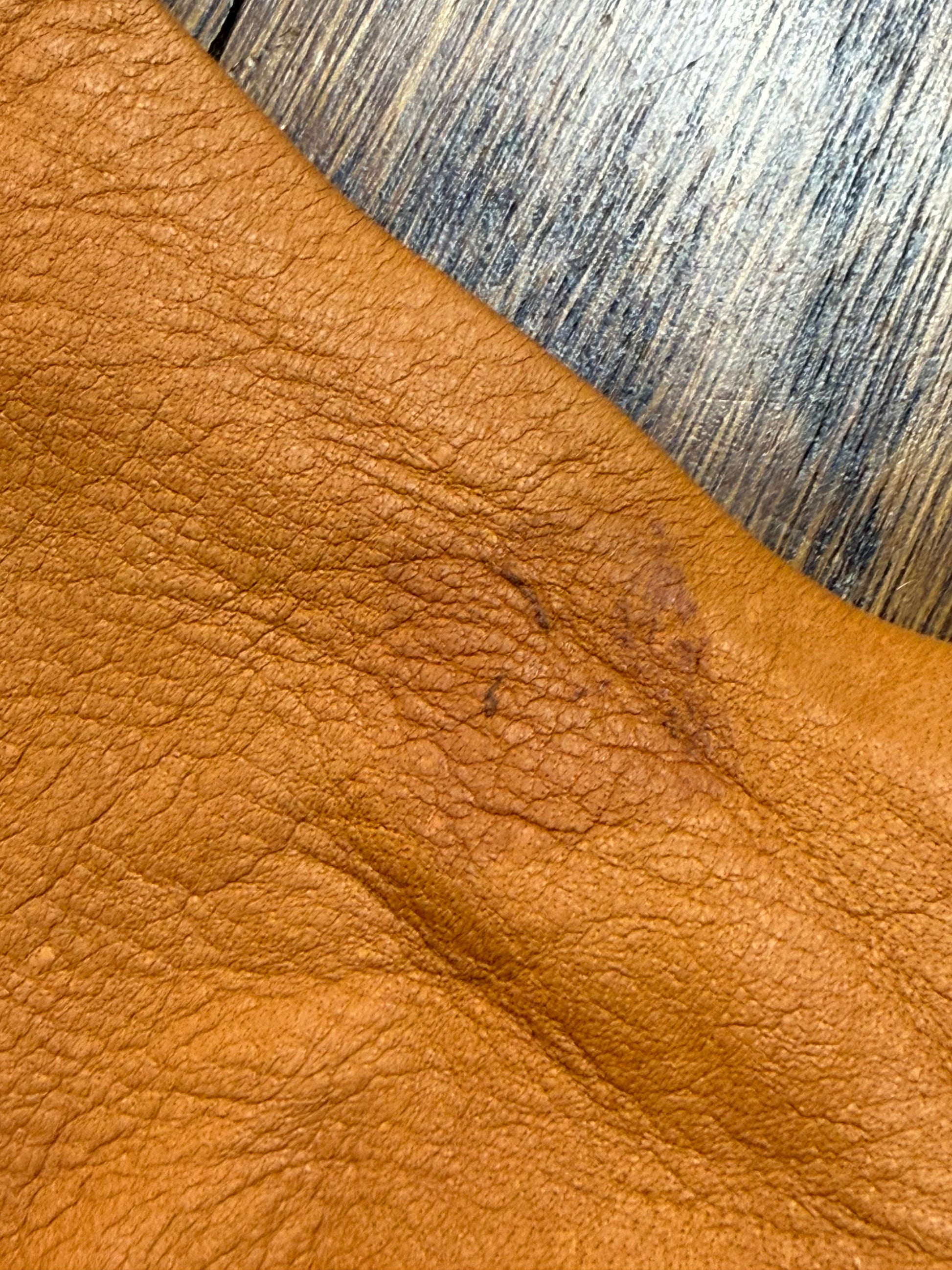Condition - There is a mark that looks kind of like there was a sticker on it at some point that seems like it will be hidden under your left arm. There are some white marks on the back side.