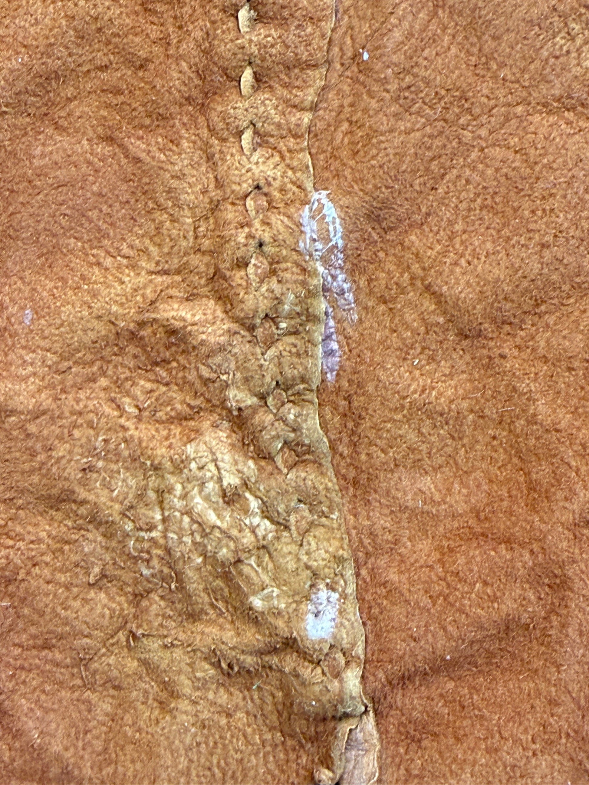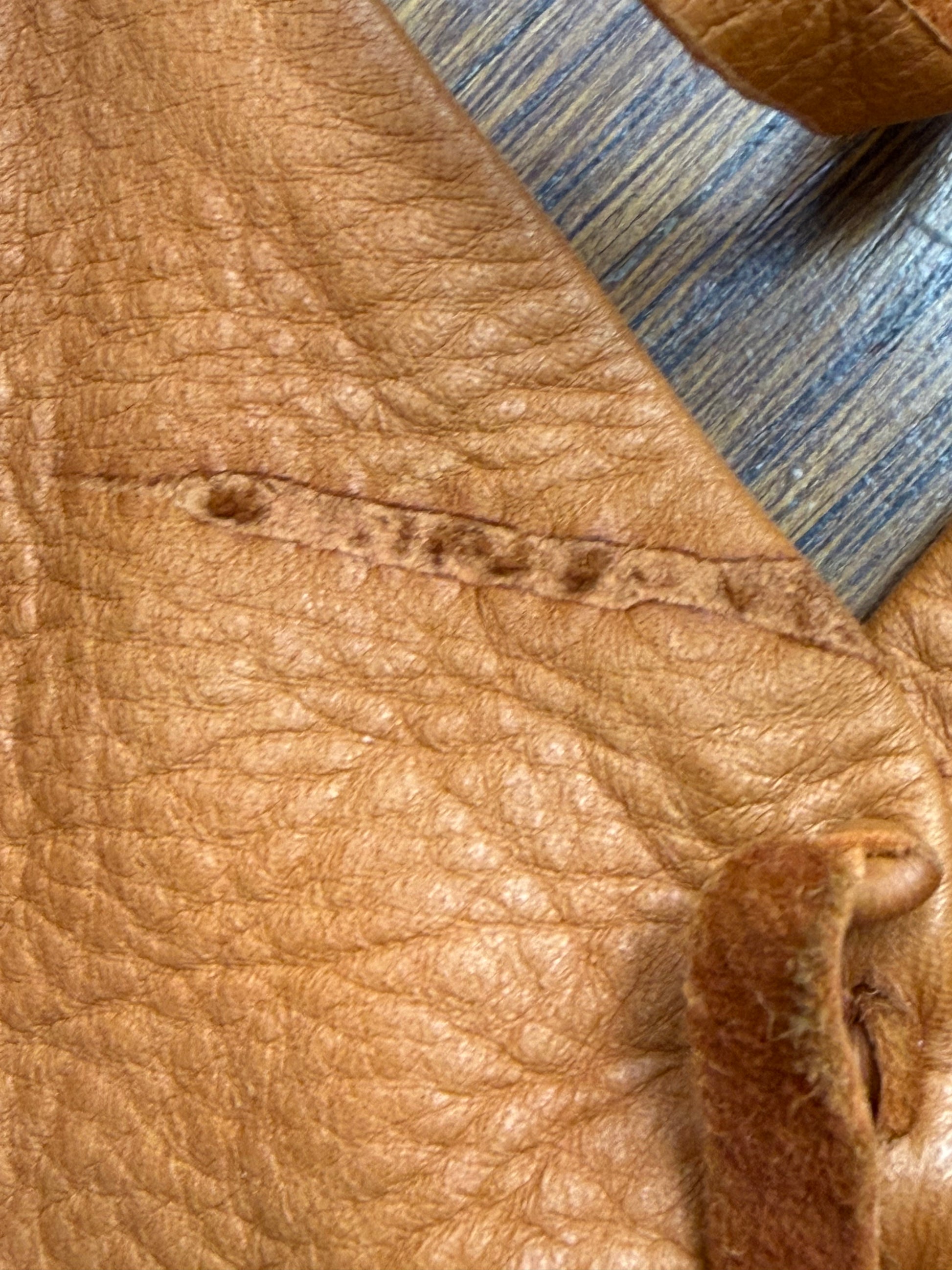 Description - This is a really cool leather hide halter top that I think is from the 70s. It's got a cool one of a kind handmade look because the edges are not cut even.