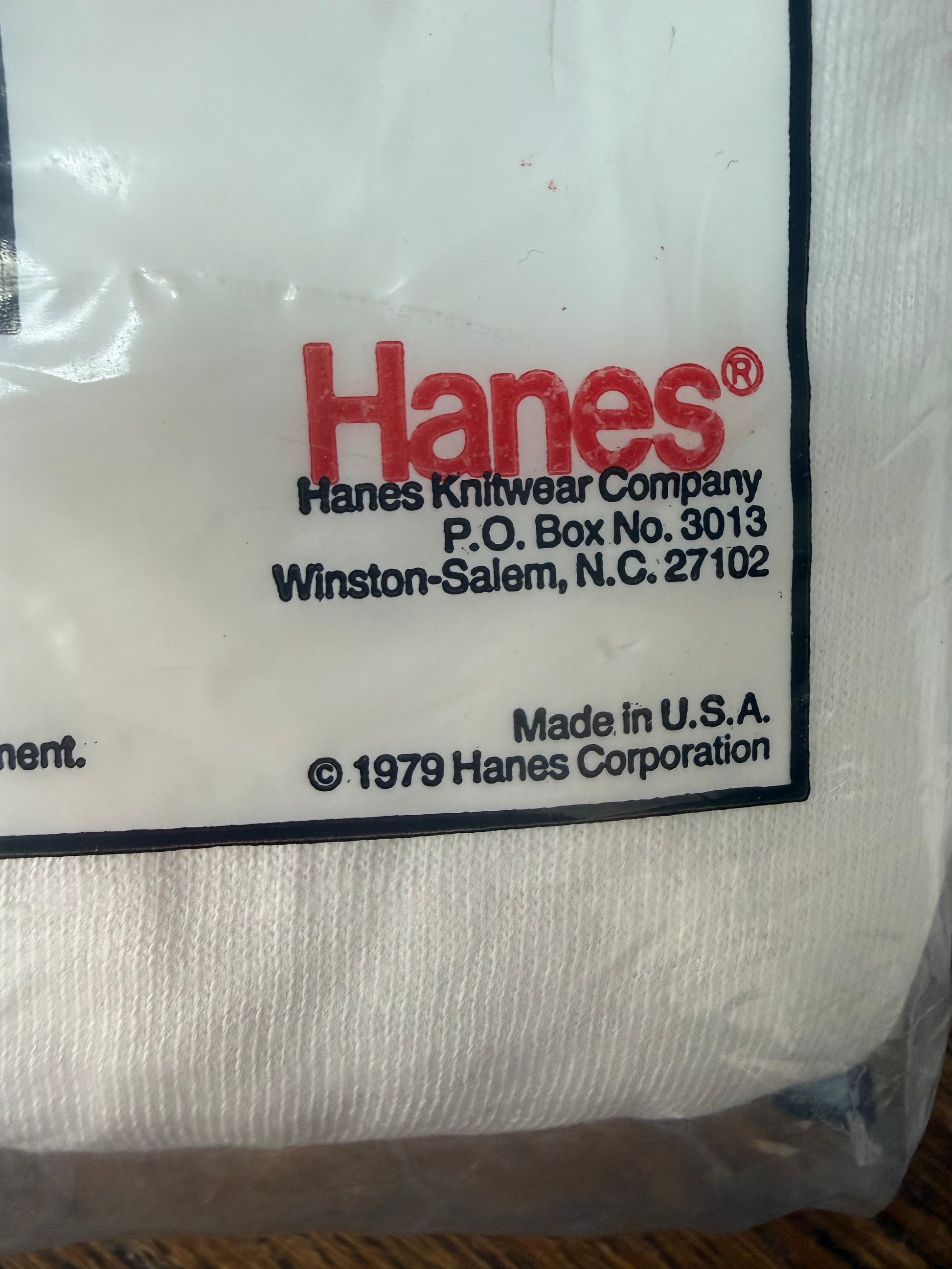 1970s Hanes V-Neck Undershirts, Size Medium, Deep V, Pkg of 3, 1979 New Old Stock in Package