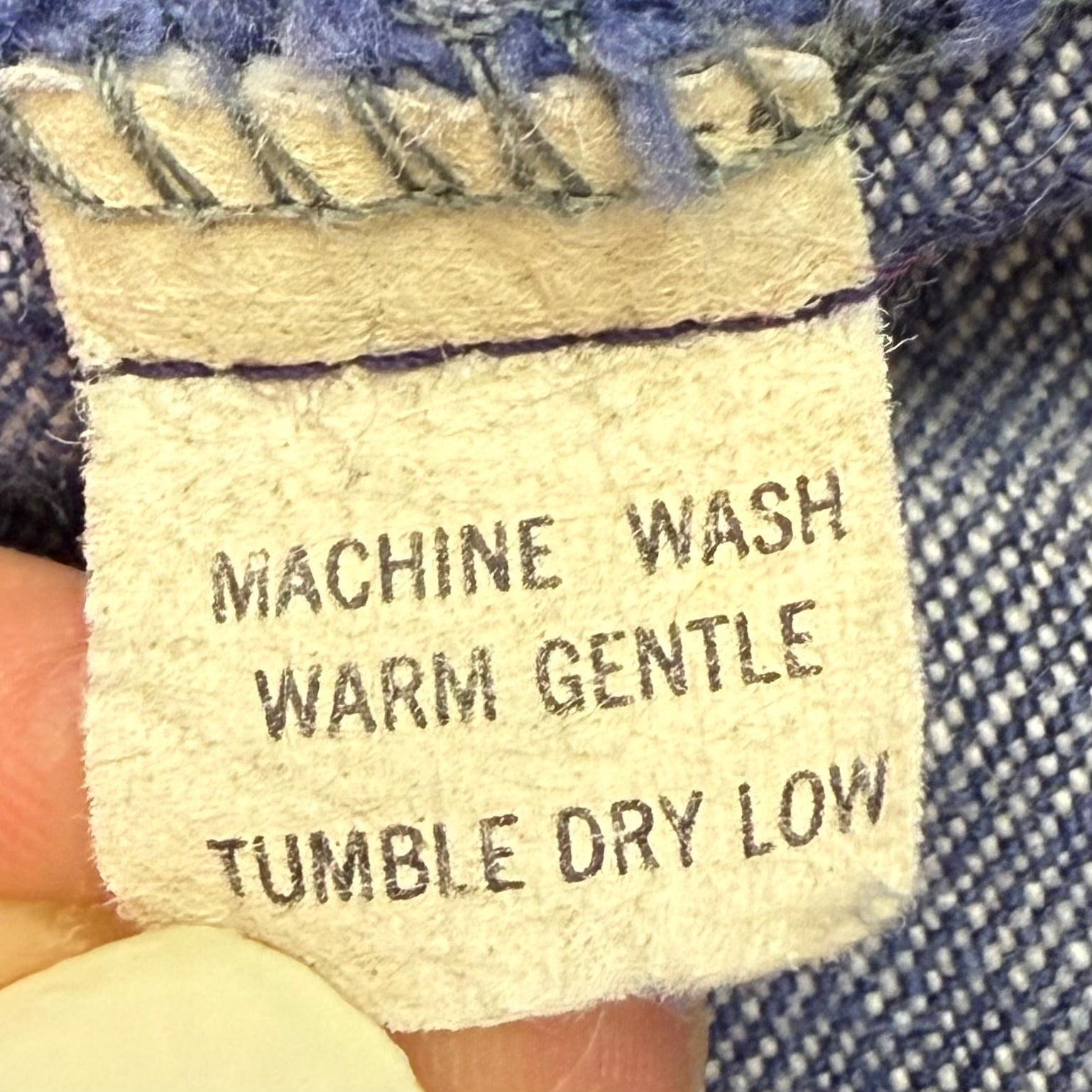 Description - Cool bellbottom blue jeans from the 70s that have a snap fly
