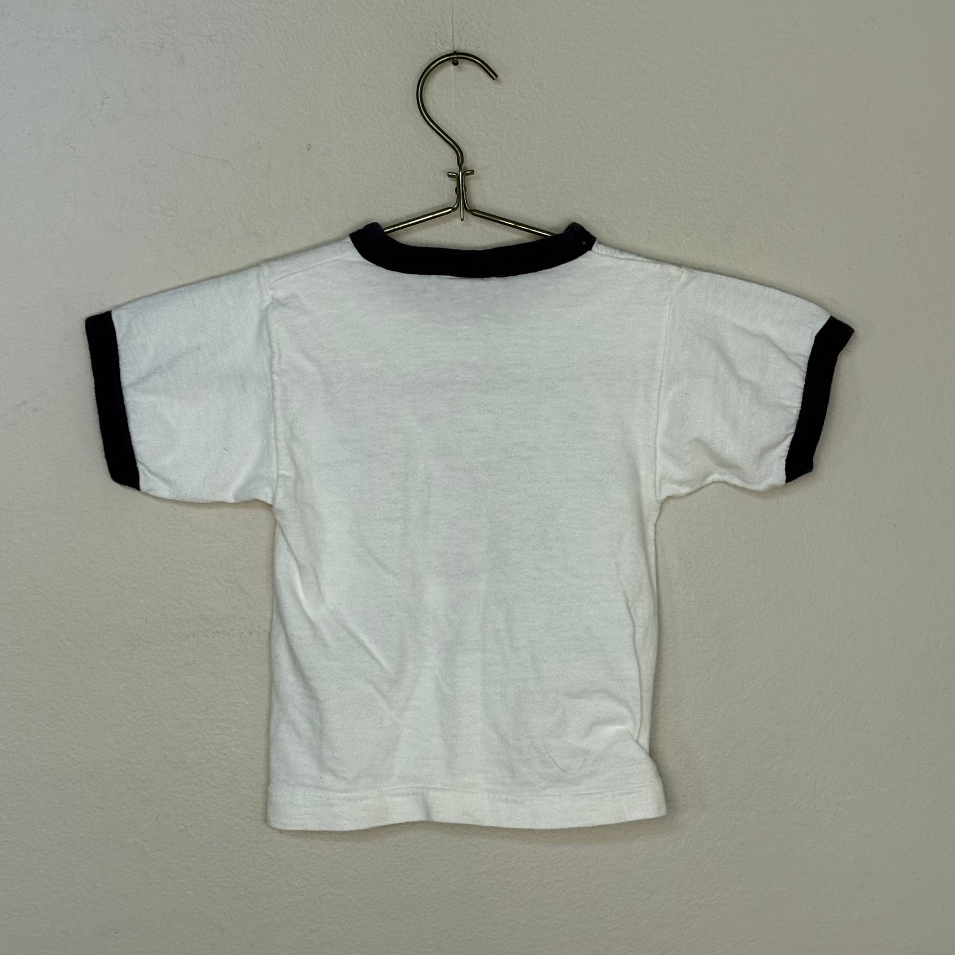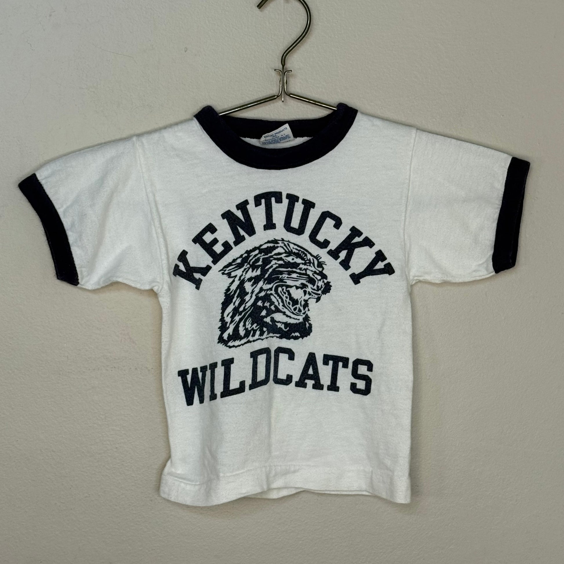 Description - White and blue Kentucky Wildcats ringer tee from the 70s for the tiniest UK fan. It's a soft all cotton single stitch shirt.