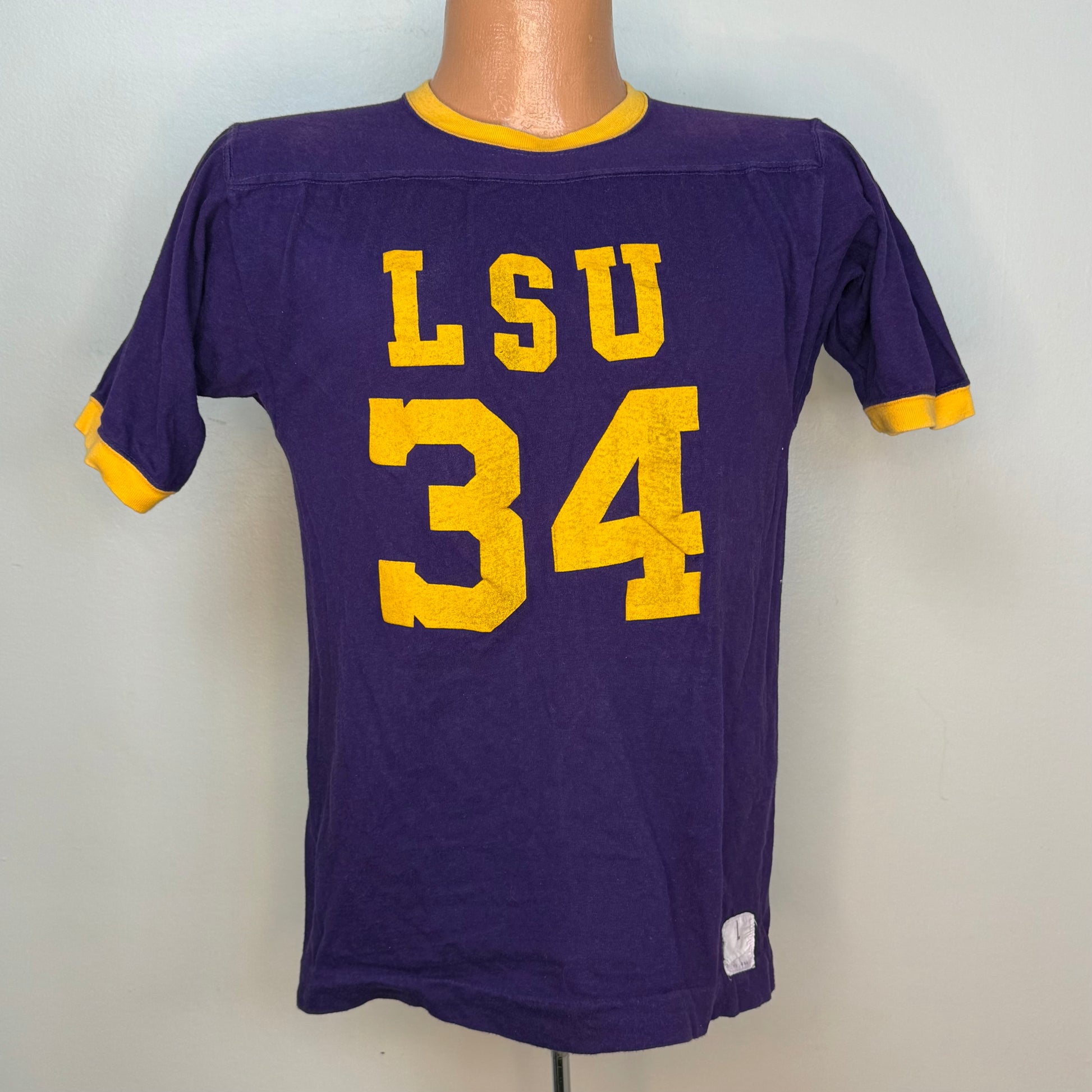 1970s LSU T-Shirt, Louisiana State University Football 34 Jersey Ringer Tee, Sportswear Size Youth Large/Adult Small