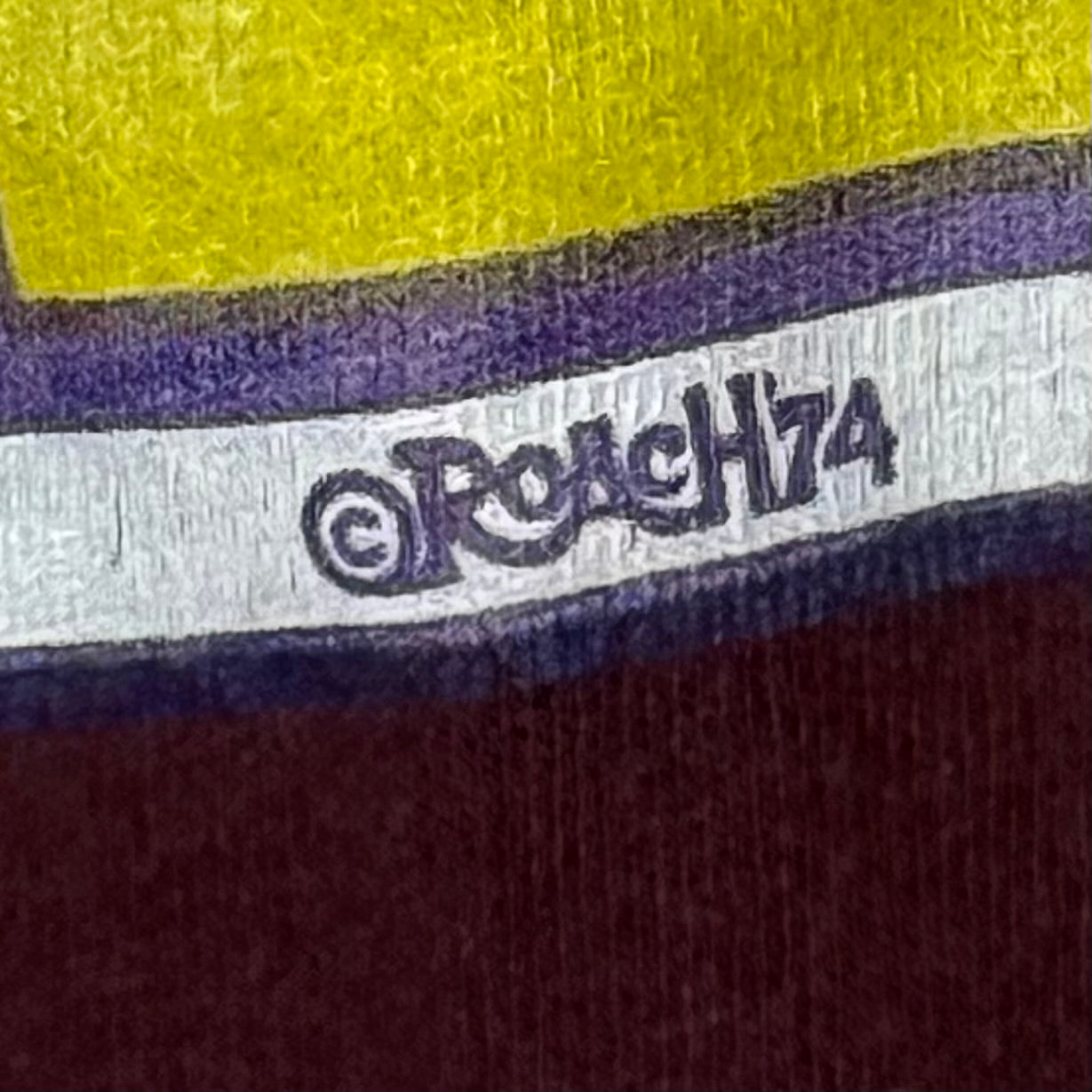 Description - LSU tee from the 70s. The artwork is signed Roach '74. It's a soft and thin single stitch maroon shirt.