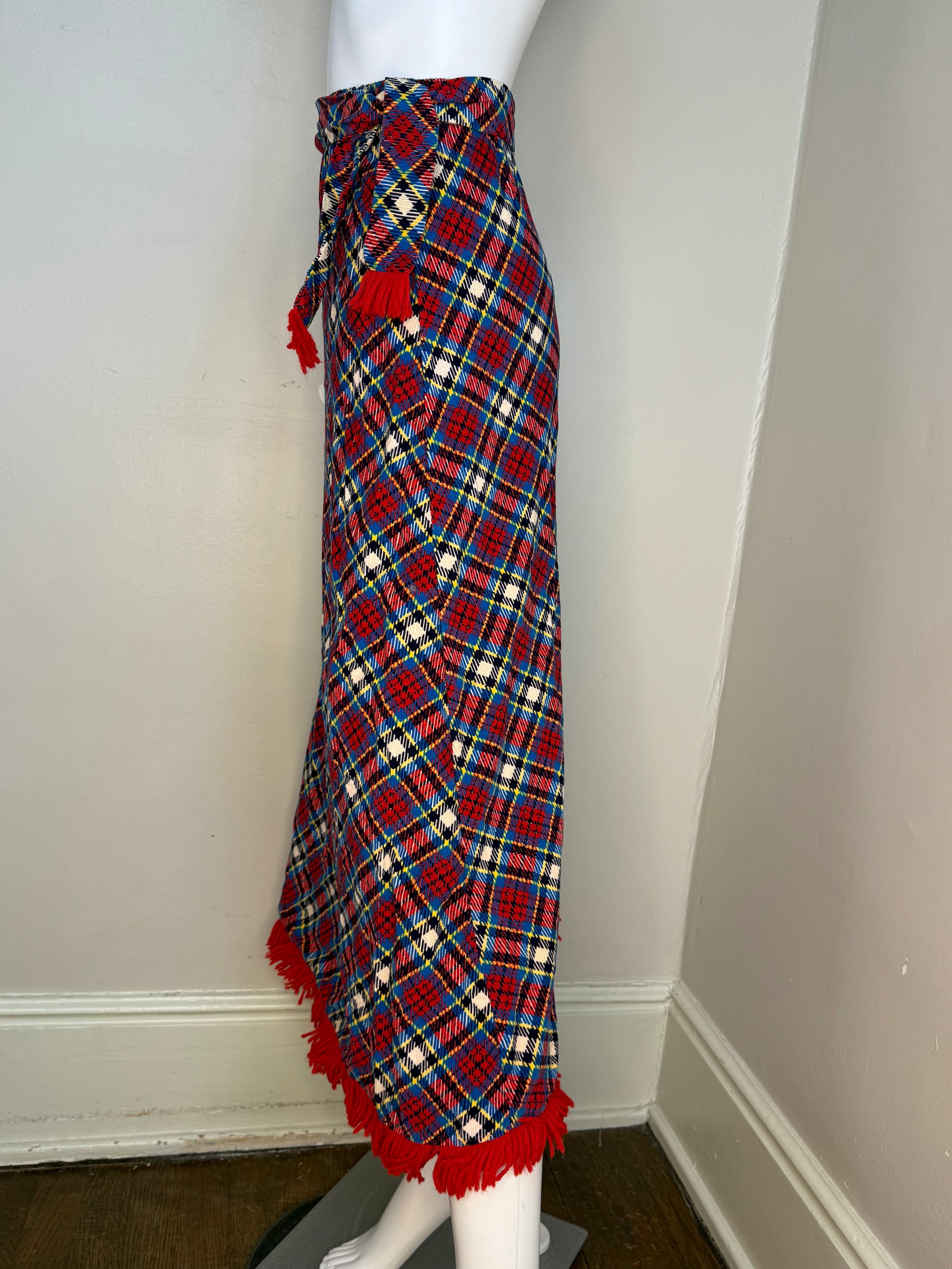 1970s Plaid Corduroy Maxi skirt with Fringe Trim, Flora Ottimer Girls 12/14, Adult XXS