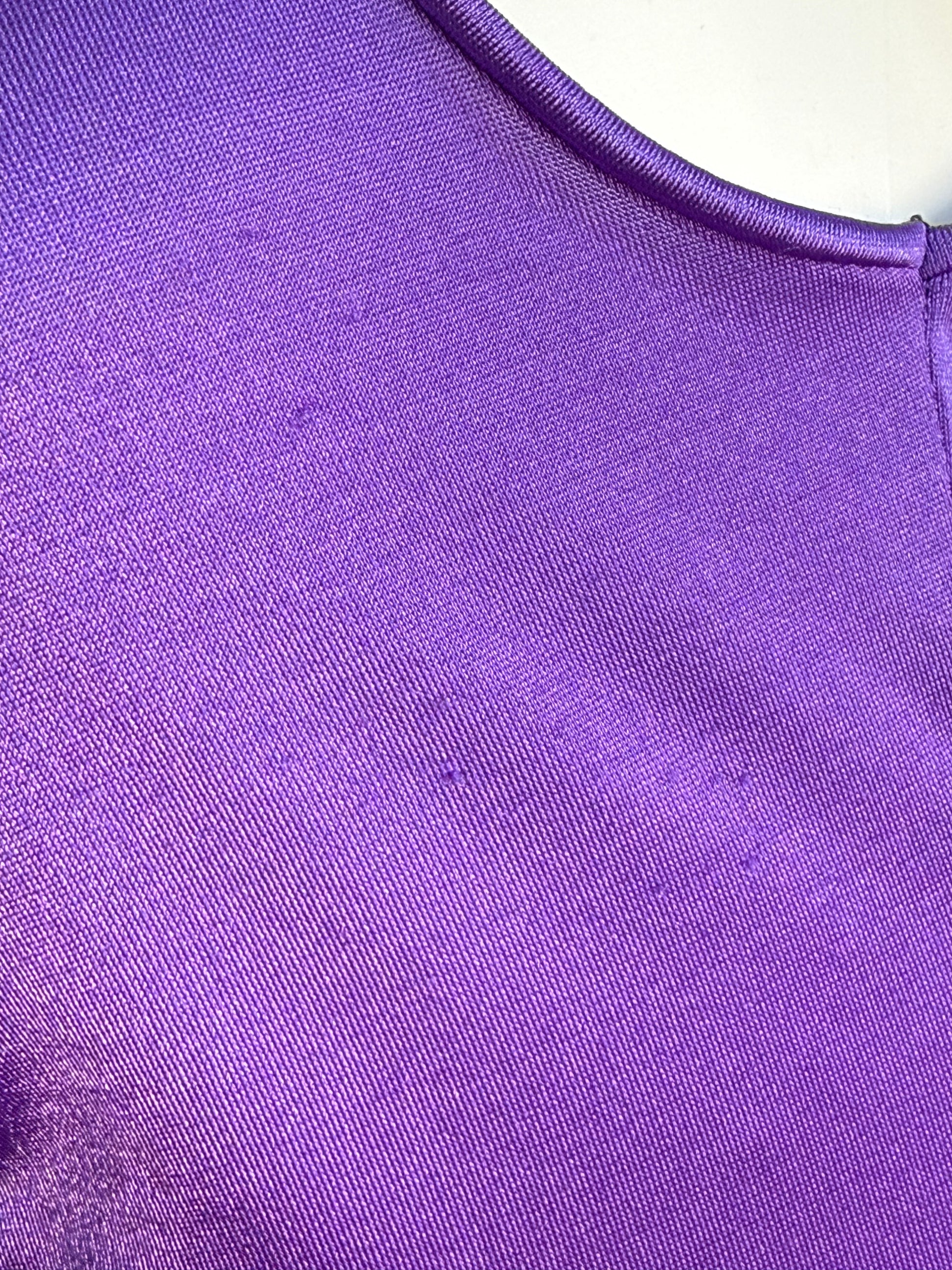 Description - Pretty Purple nightgown from the late 70s or early 80s that looks identical to what Olga was making around the same time but this one is labeled Lorraine. The bodice has lycra for a flattering fit with lace pannel cut outs. The skirt has a huge sweep