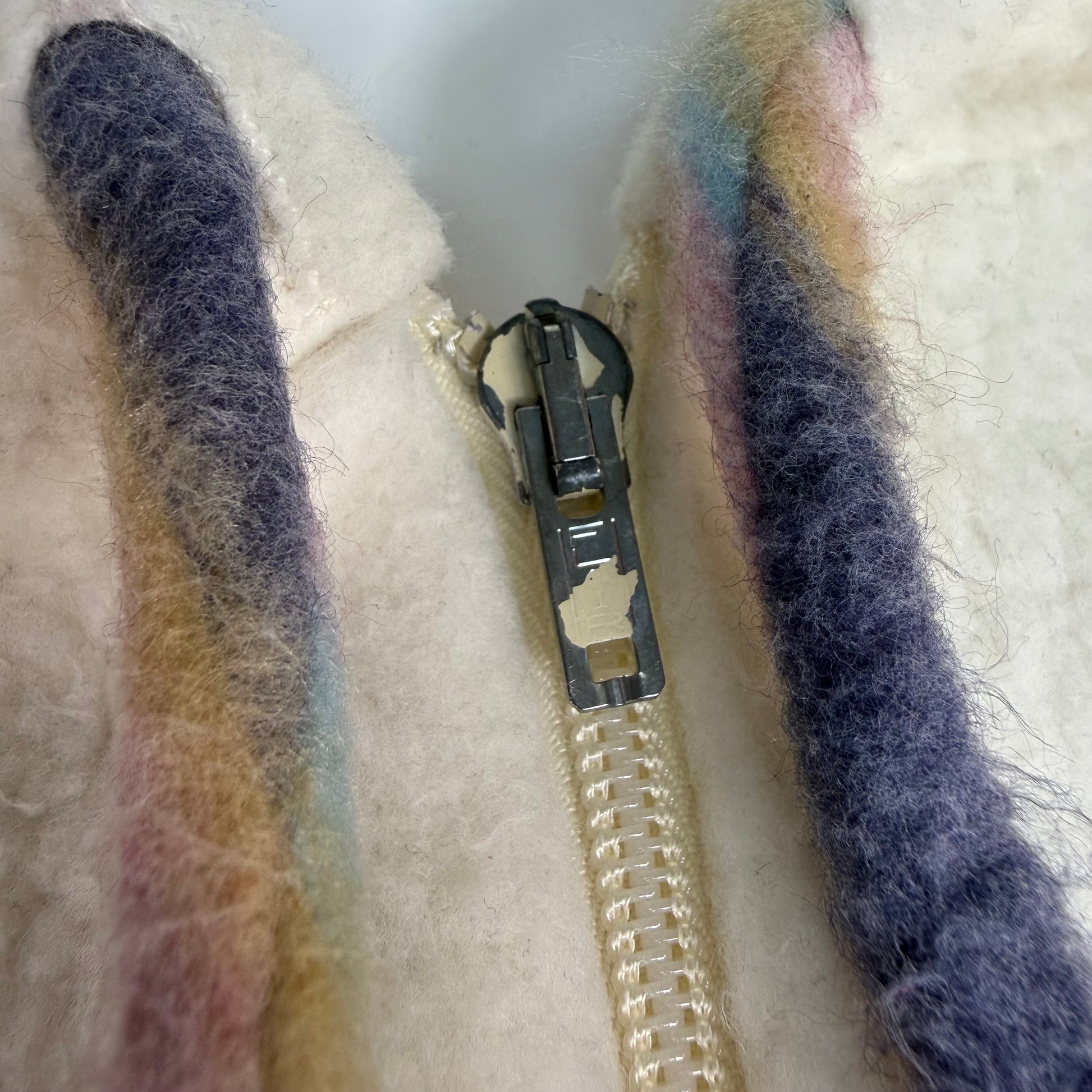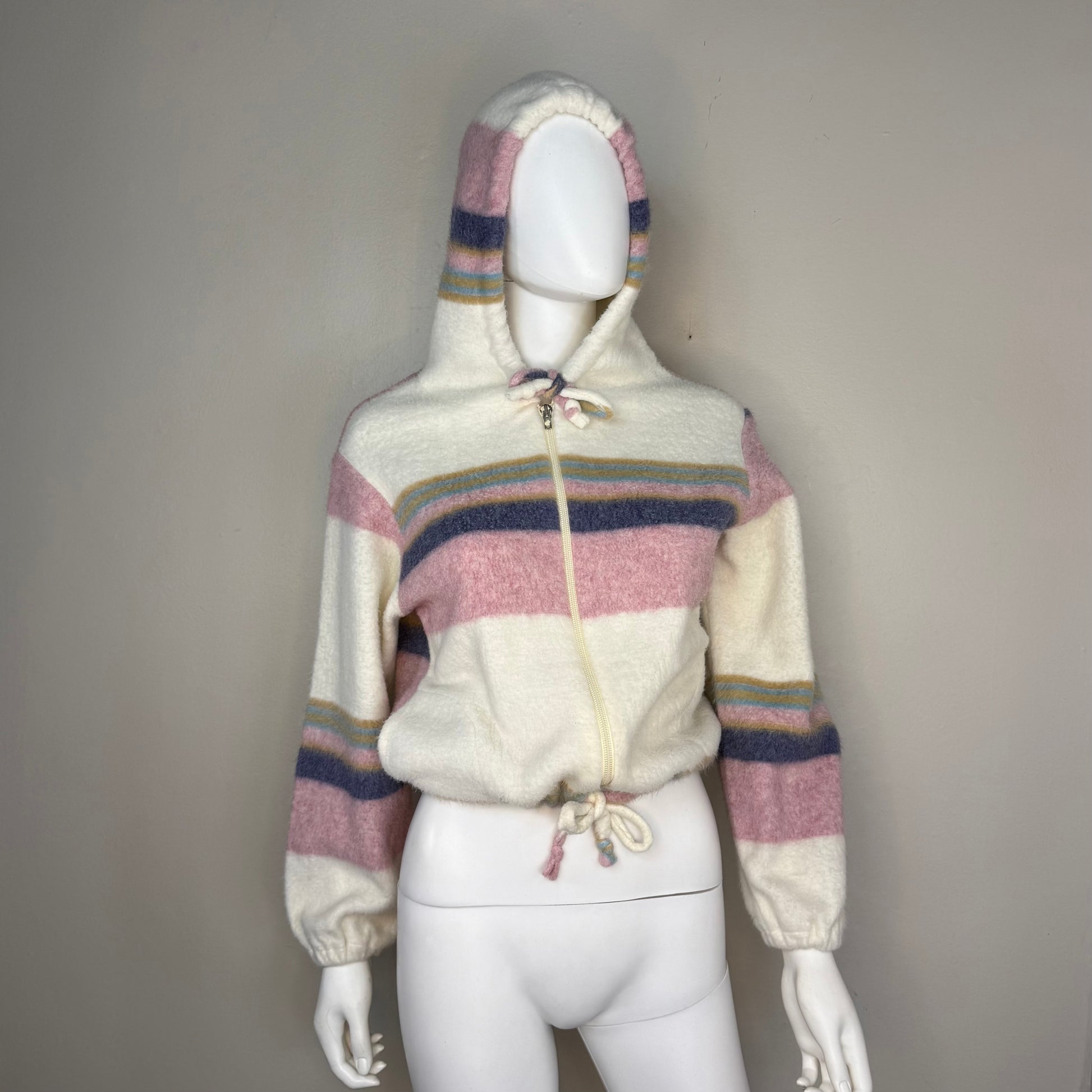 1970s Striped Fleece Hooded Jacket, Cream and Pink, Size Small