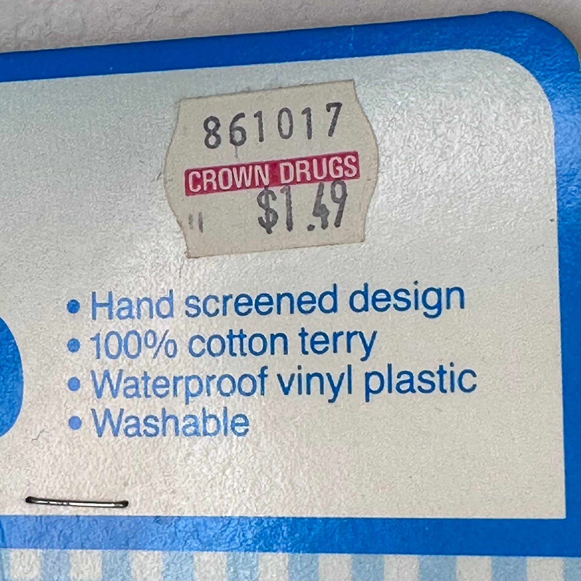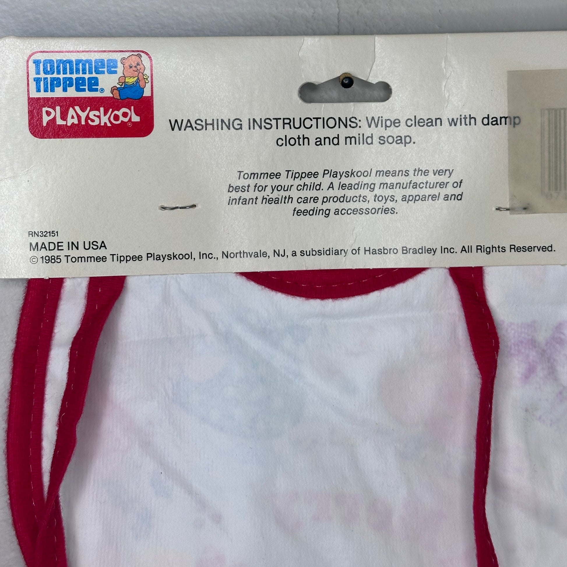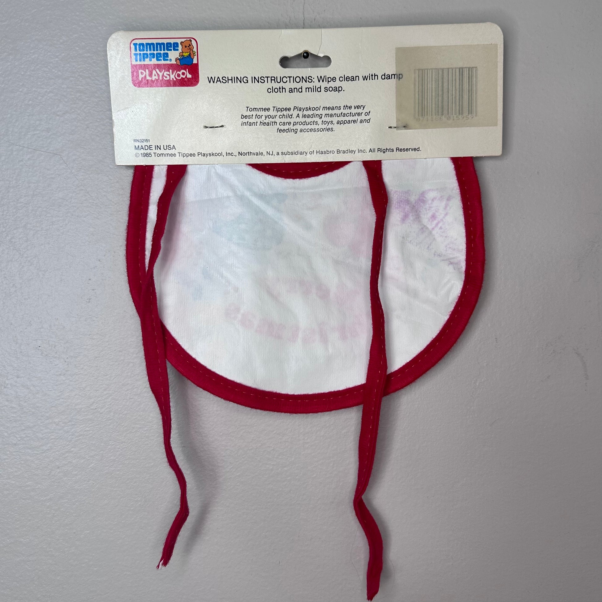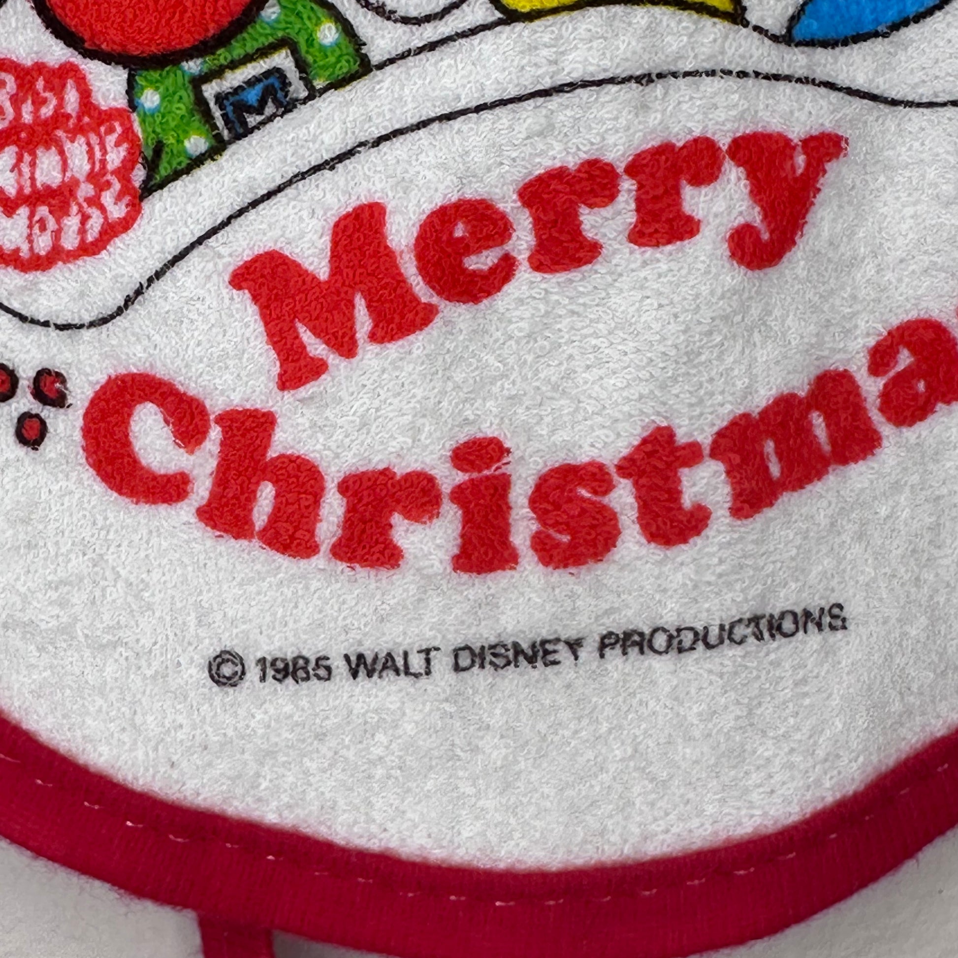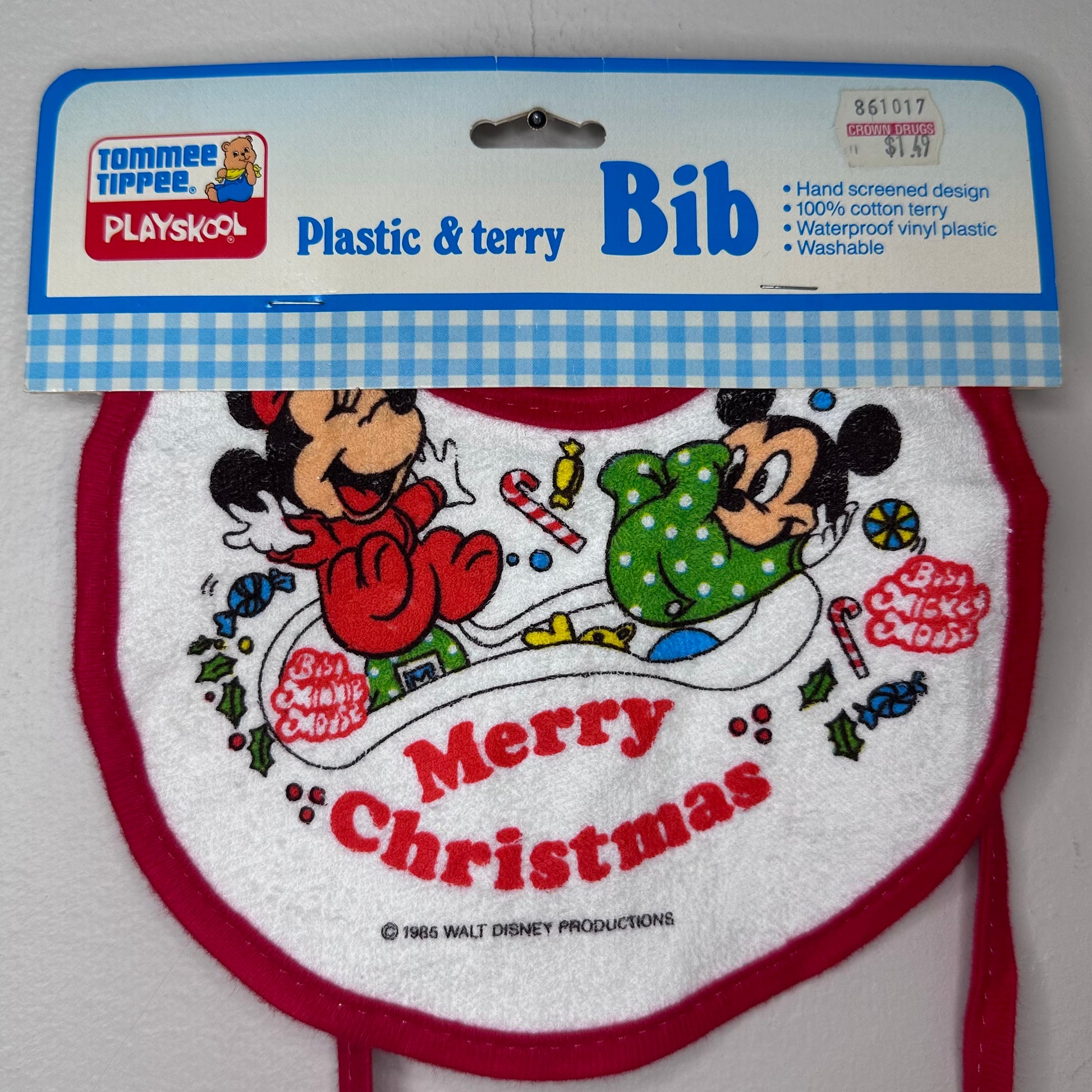 1980s Baby Minnie and Mickey Mouse Merry Christmas Plastic & Terry Bib, Tommee Tippee Playskool, 1985 Walt Disney
