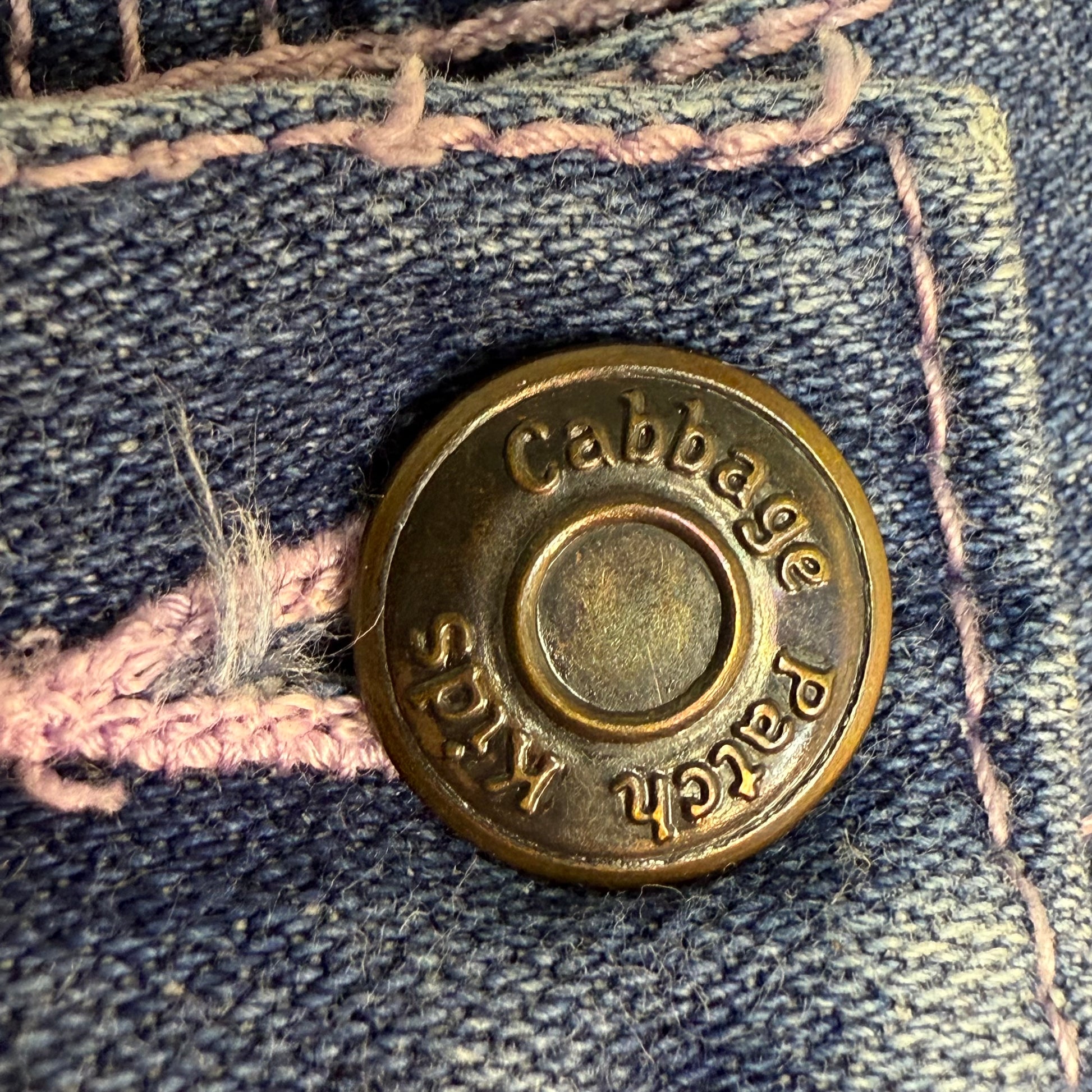 Description - Blue jeans from the mid 80s with the Cabbage Patch Kids logo embroidered on the back. They have a straight leg