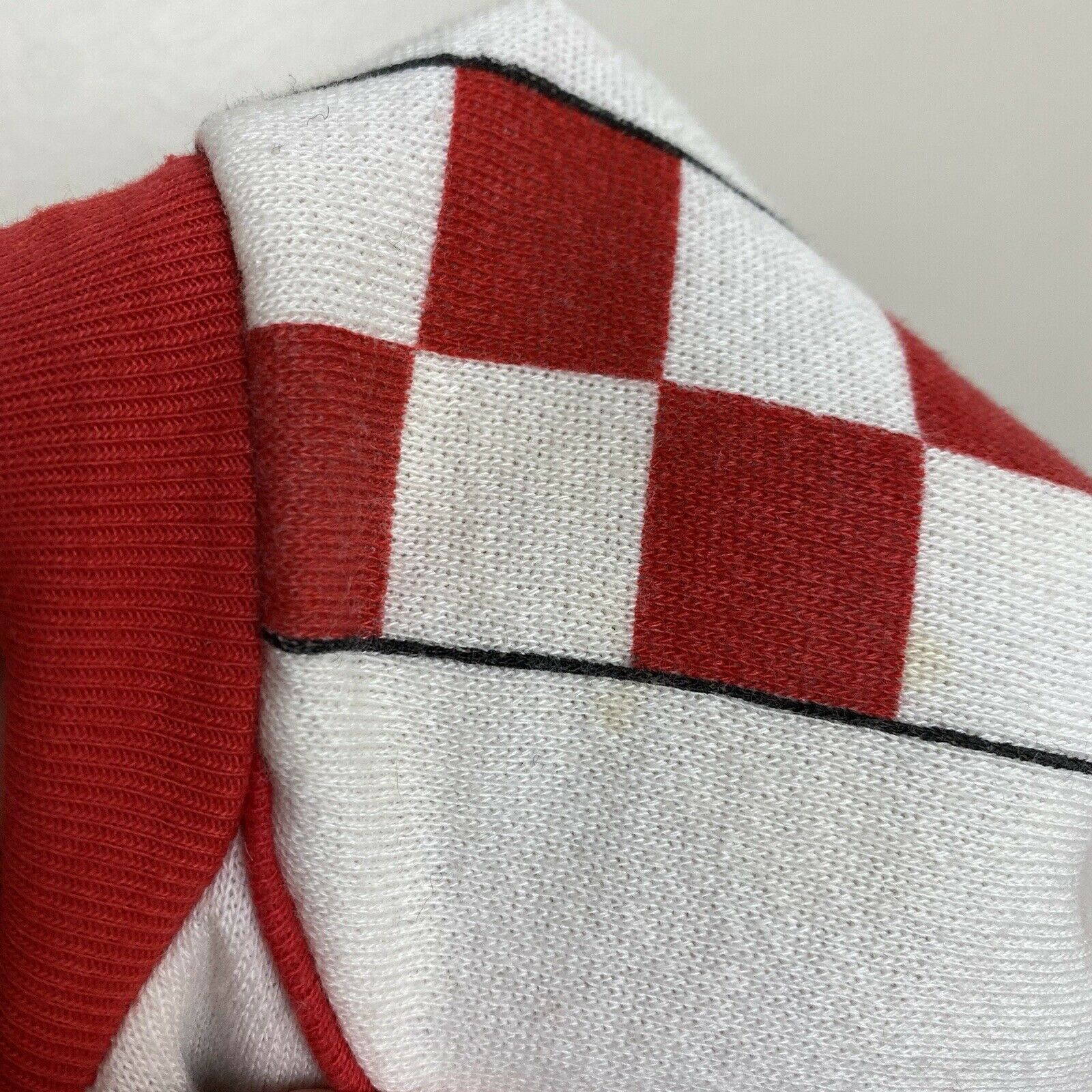 Condition - I found a pin sized spot on the back and there is some faint yellowing on the left sleeve in the checkerboard part.