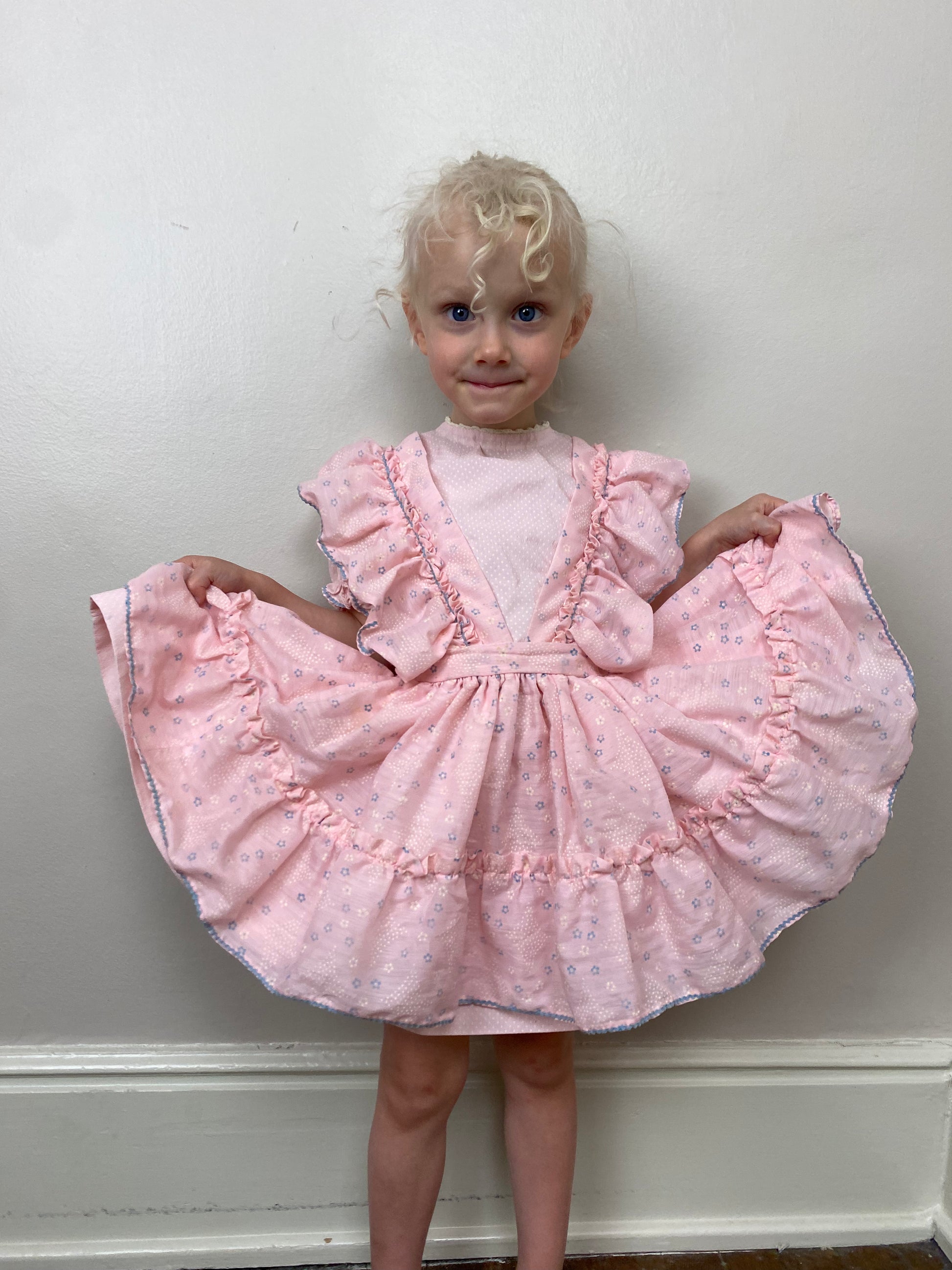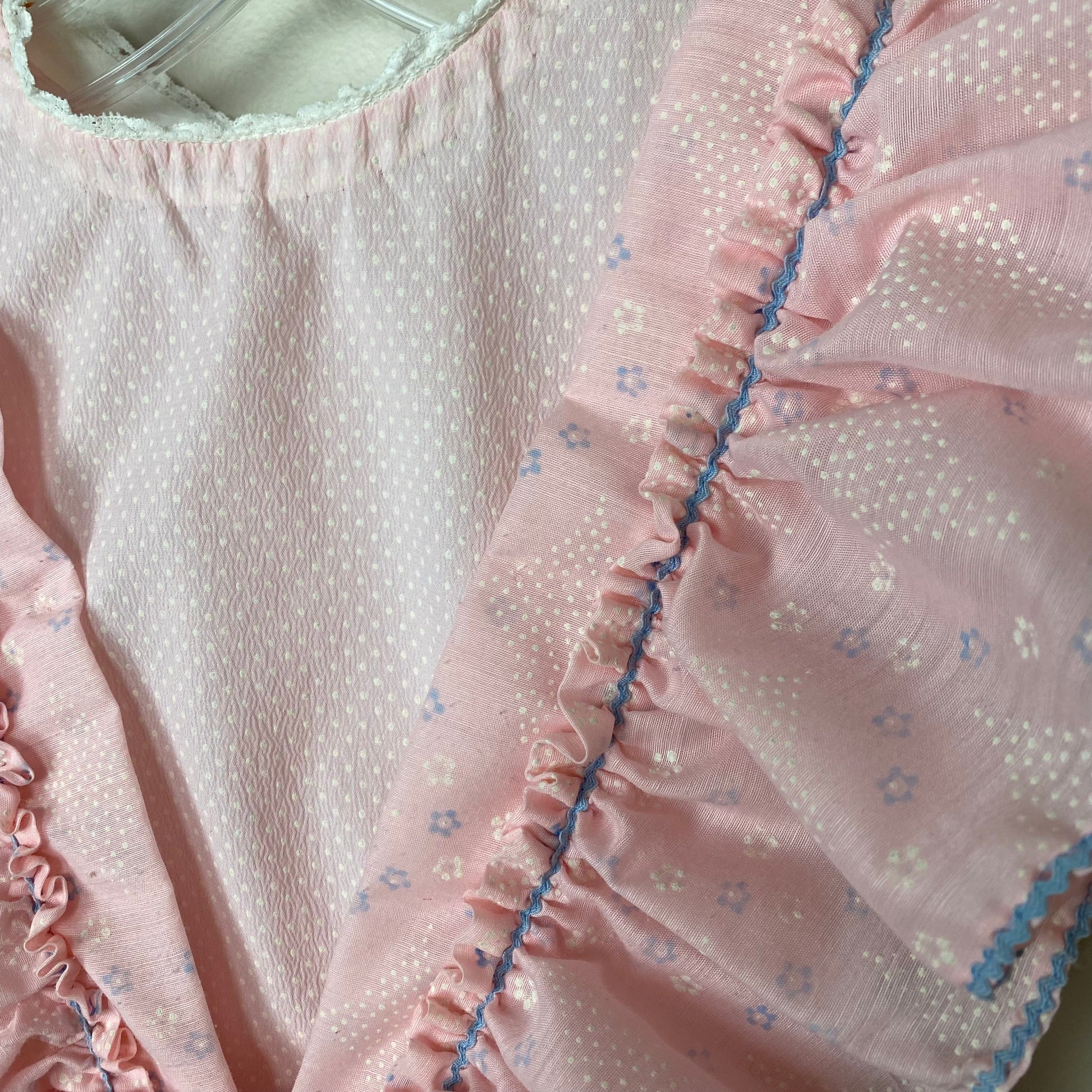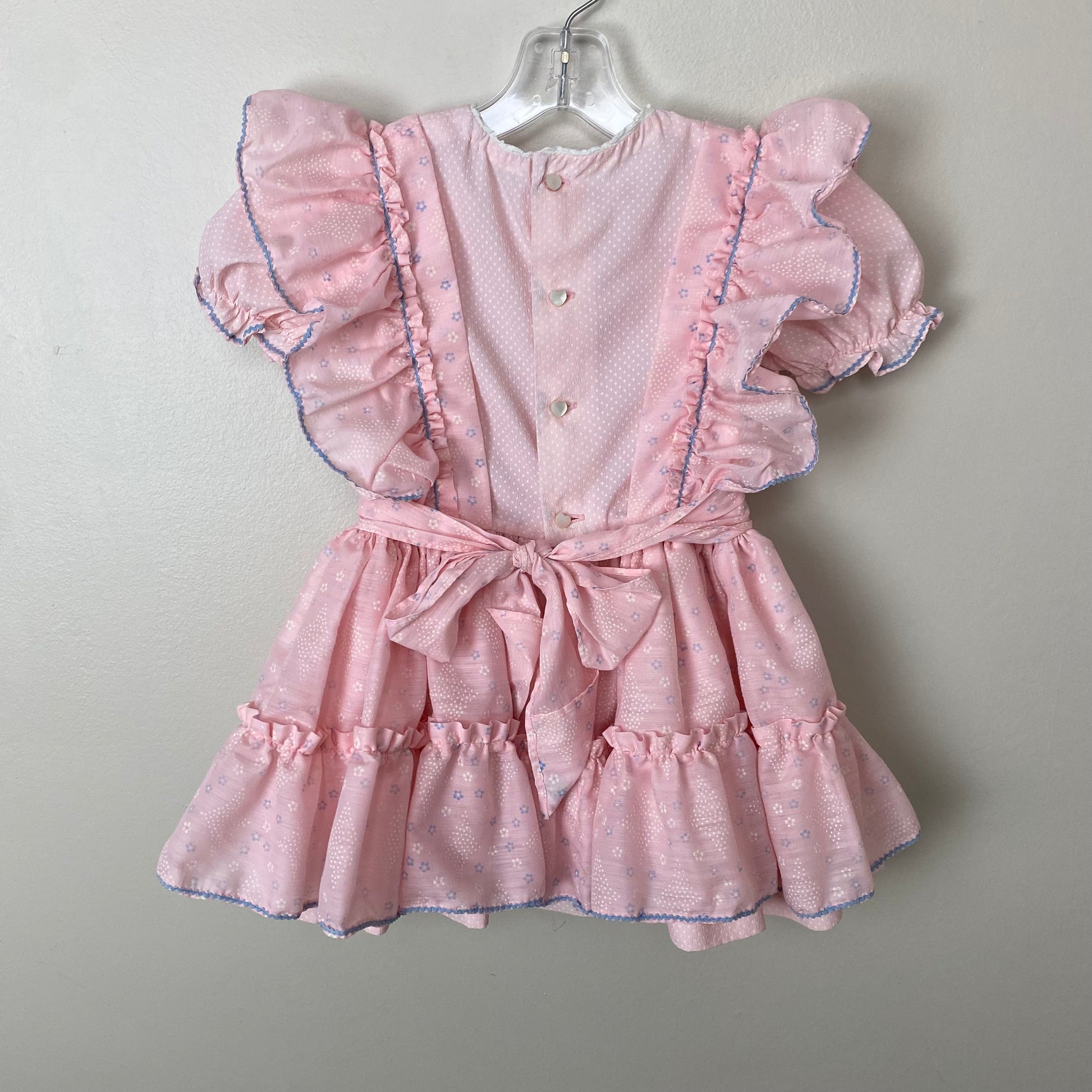1980s Flocked Floral Dress, Pastel Pink, Handmade, Size 5/6