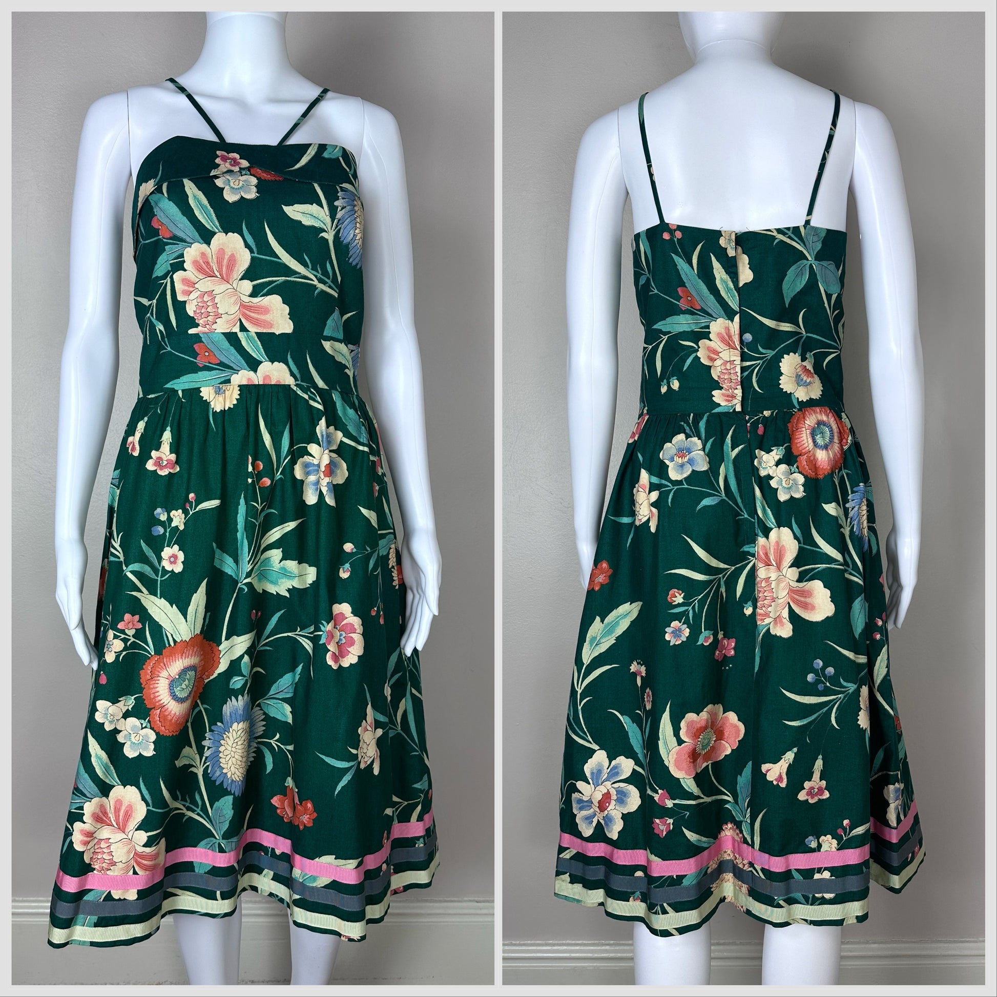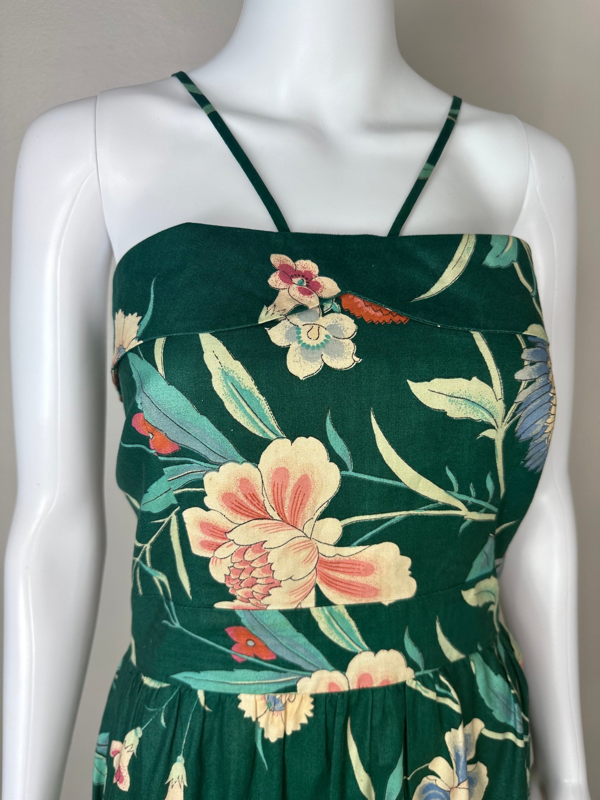 1980s Green Floral Sundress, Blair Woolverton Size S/M