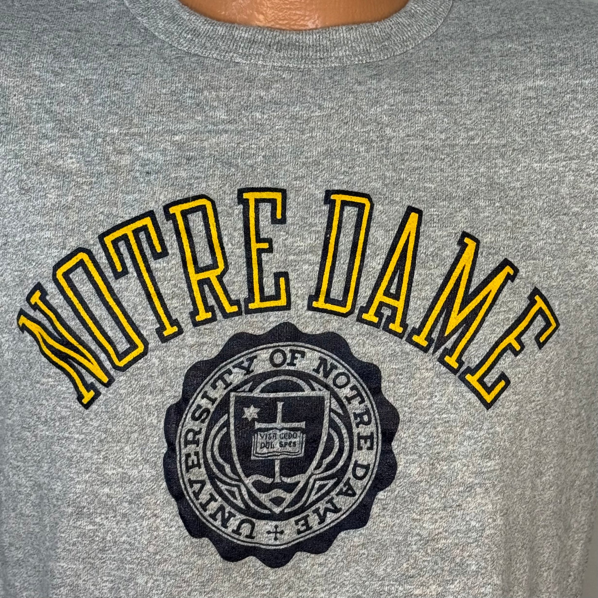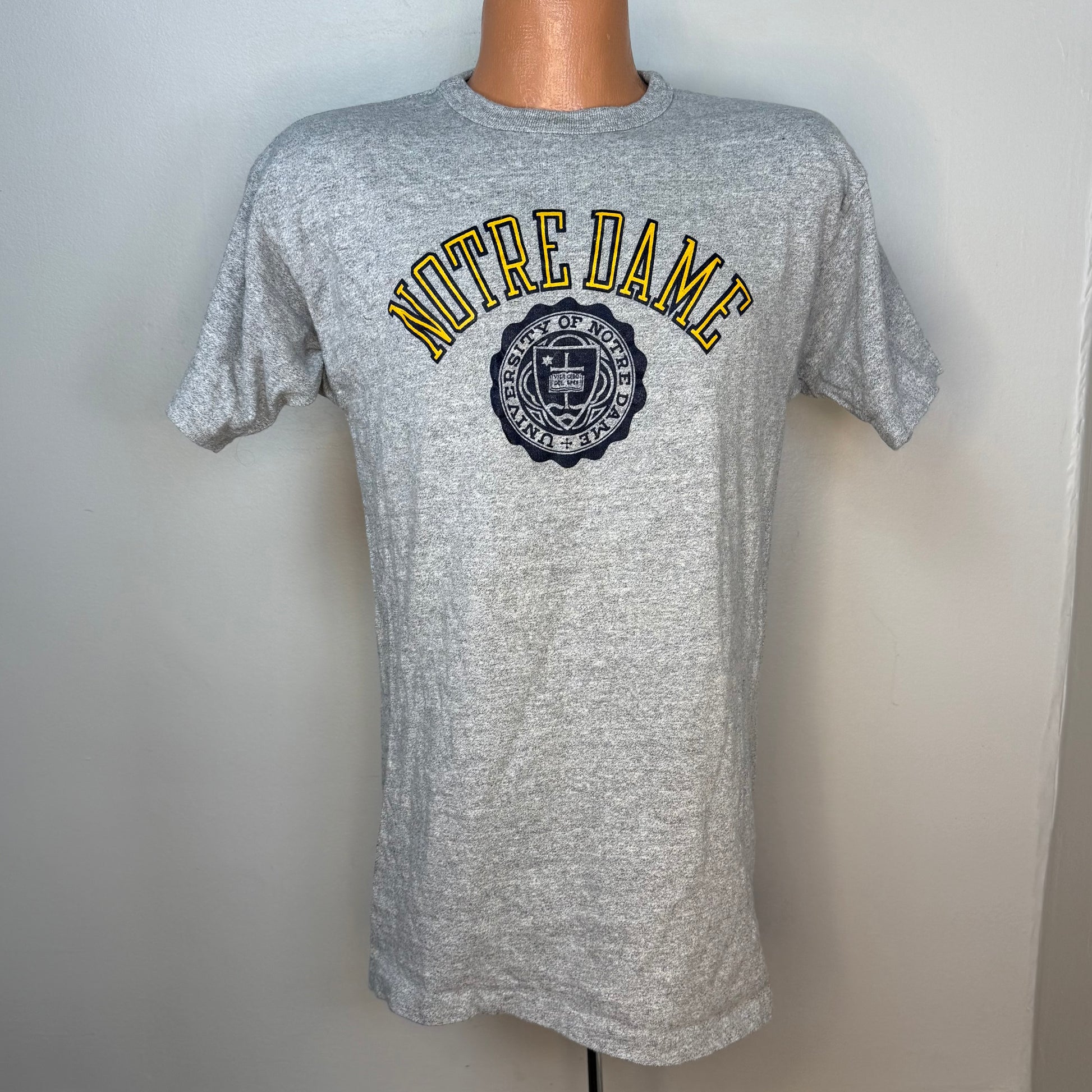 Description - Heather grey University of Notre Dame tee from the 80s. It's a soft single stitch shirt