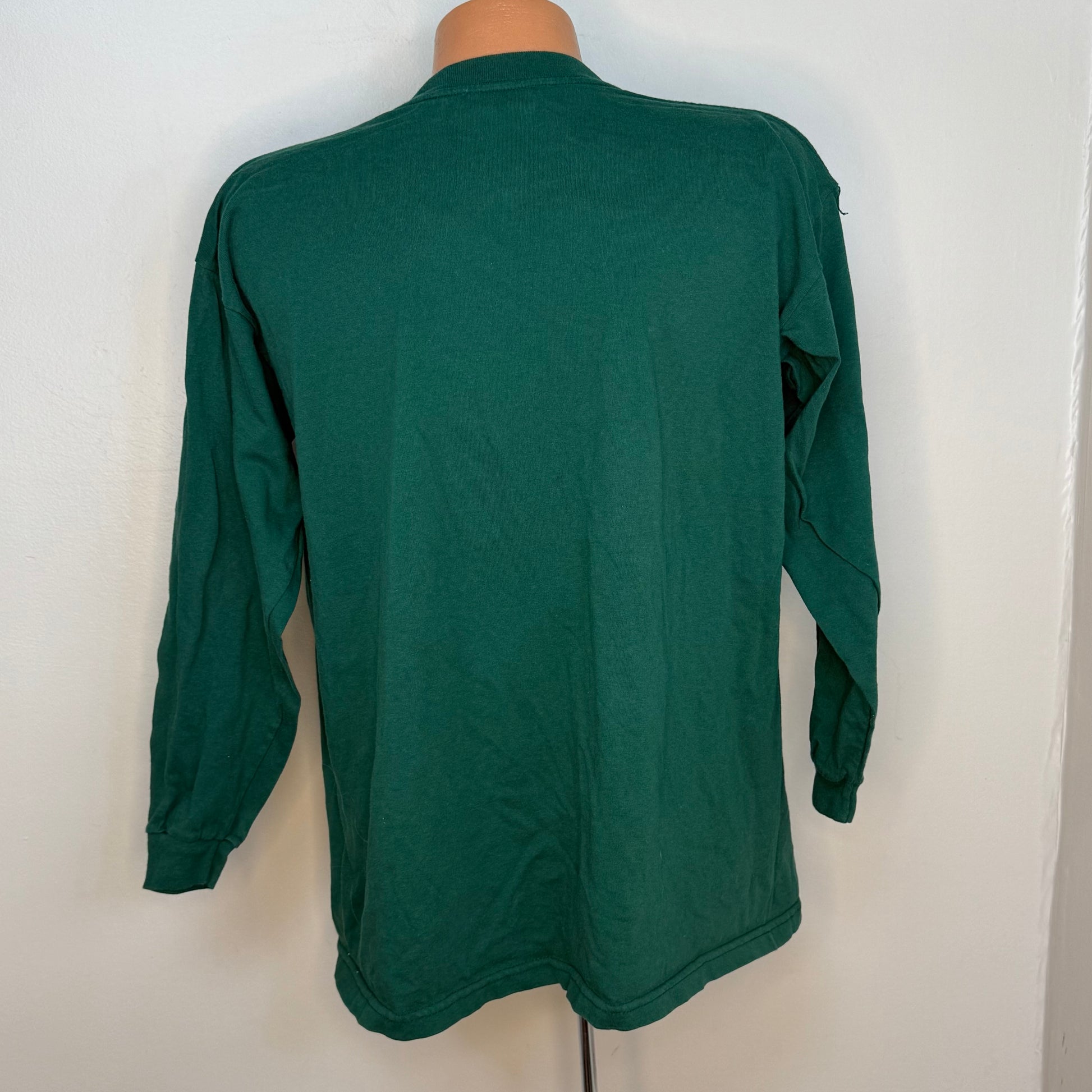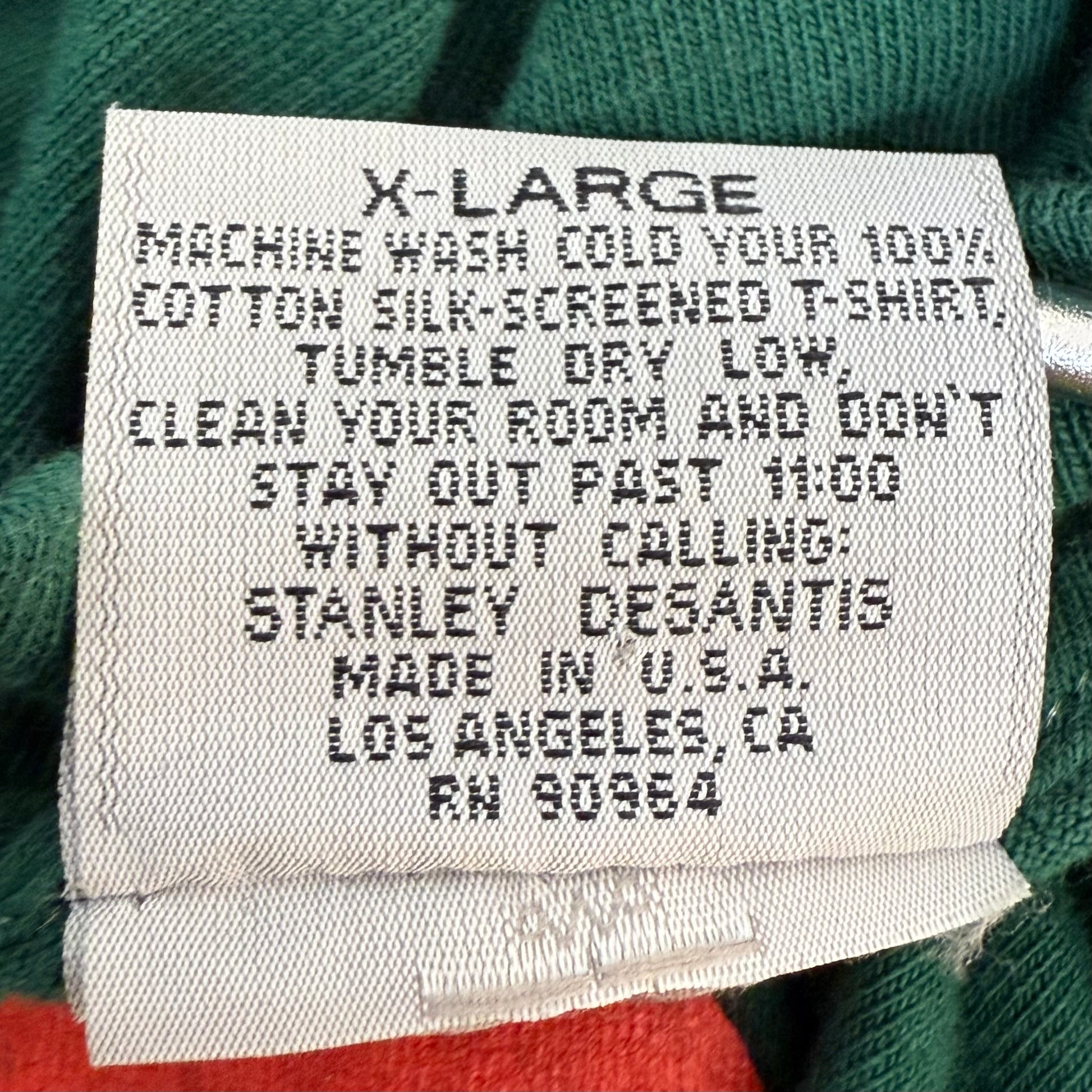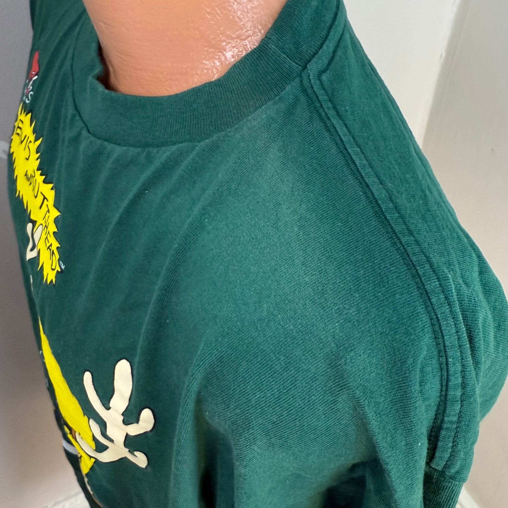 Description - Green long sleeve tee from the 90s with a Christmas themed Beavis and Butthead graphic. Butthead is dressed as Santa Claus and Beavis is dressed as Rudolph. The art is signed Mike Judge ©1996 MTV Networks MFG by Stanley Desantis LA
