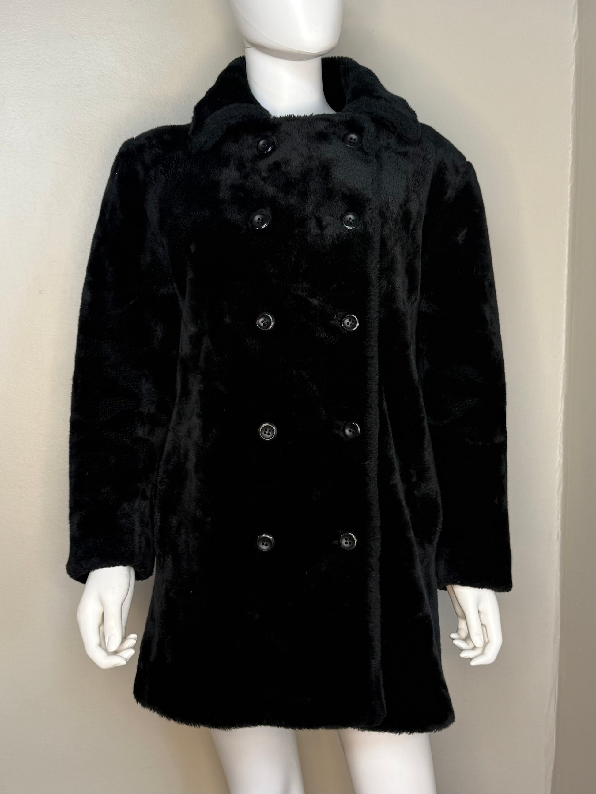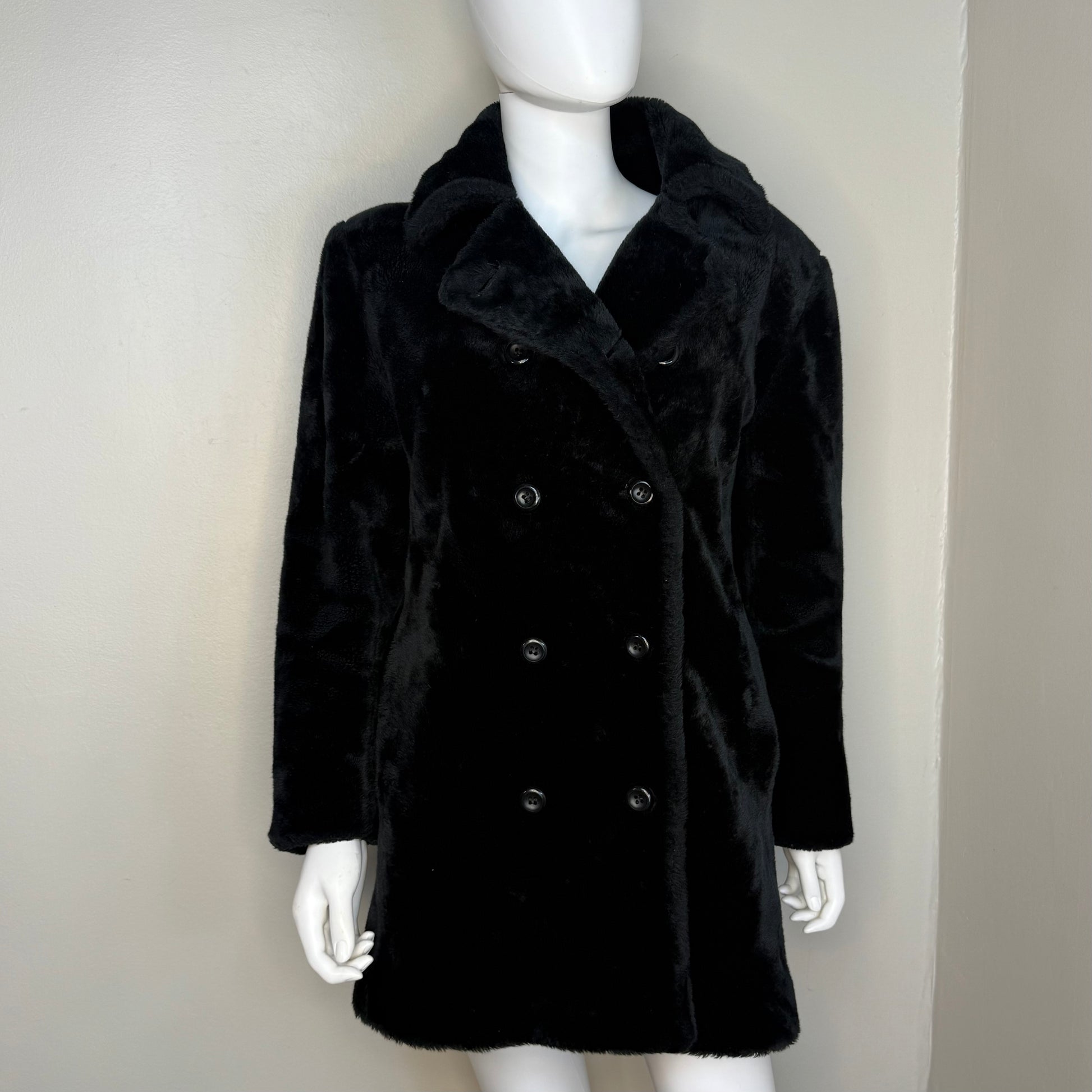 1990s Black Faux Fur Peacoat, Express Size XS-Small, Double Breasted Coat
